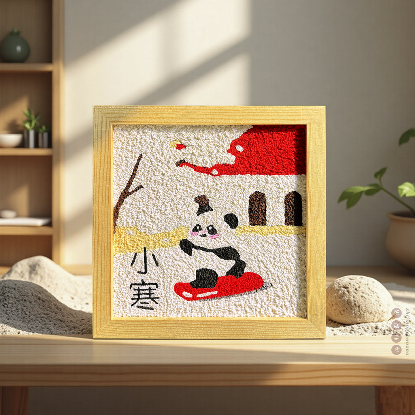 数字油画小尺寸儿童diy手工纸浆画材料包木框丙烯画填色画团建