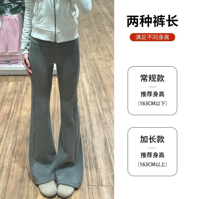 高腰显瘦小个子休闲卫裤 2025新款 女秋冬季 灰色加绒lulu微喇运动裤