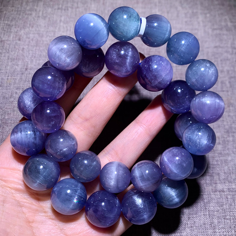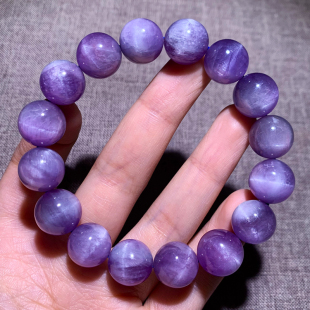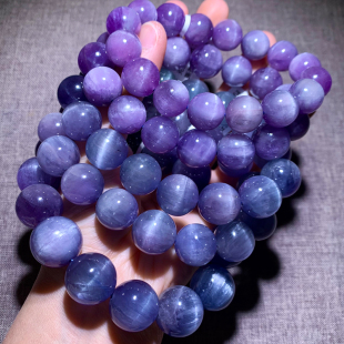 天然猫眼锂辉石手链紫罗兰紫蓝色水晶情侣手串时尚 饰品配饰送礼物