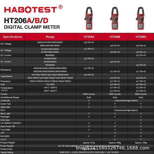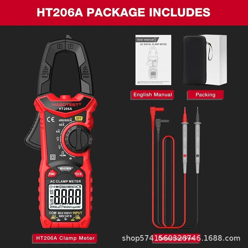 华博HT206交直流电流数字钳形万用表电工电流表温度电容NCV600A