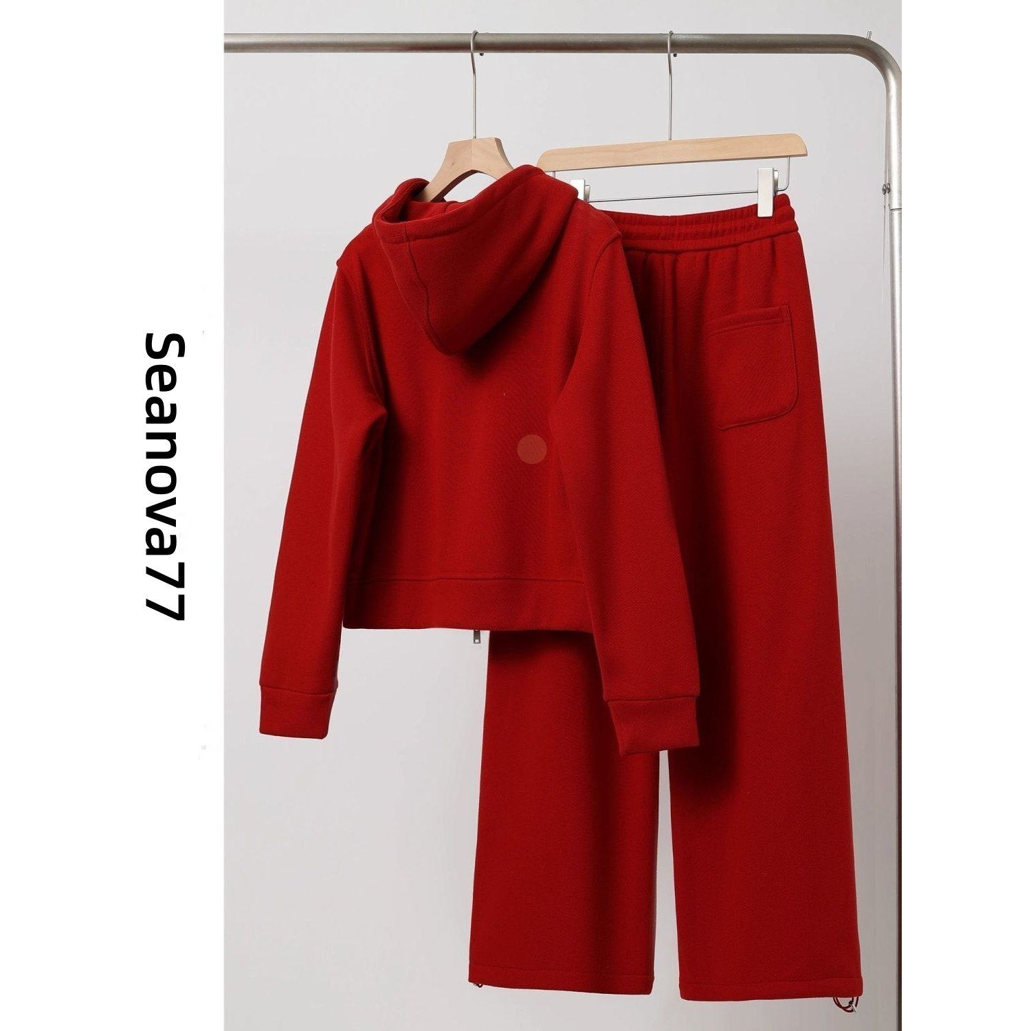 清仓捡漏 两件套 撤柜大牌新年穿搭一整套红色加绒加厚卫衣阔腿裤