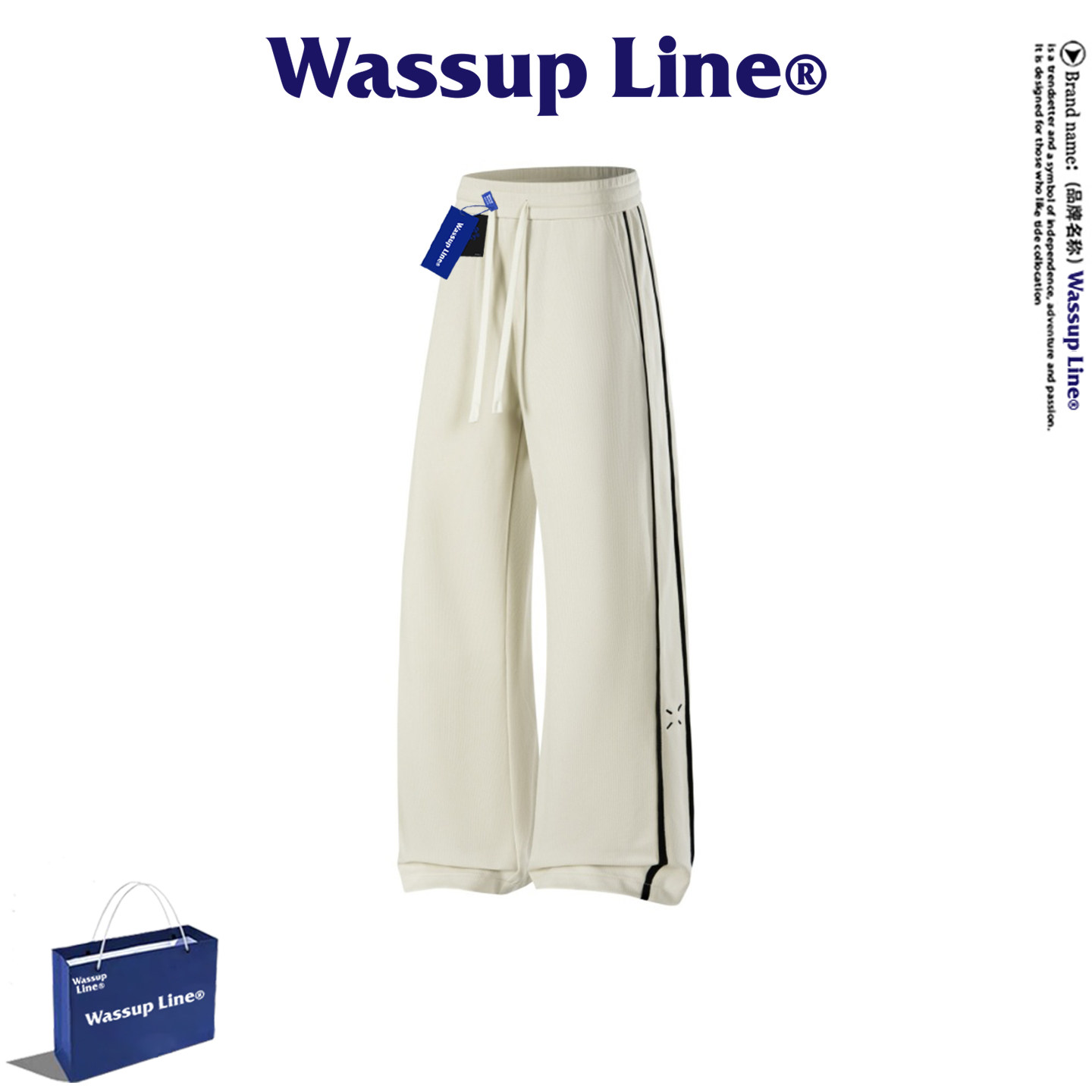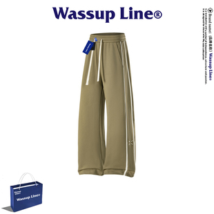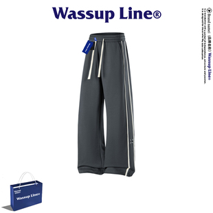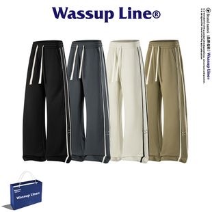 秋冬侧边条纹休闲男宽松百搭直筒裤 WASSUP Line潮牌复古运动长裤