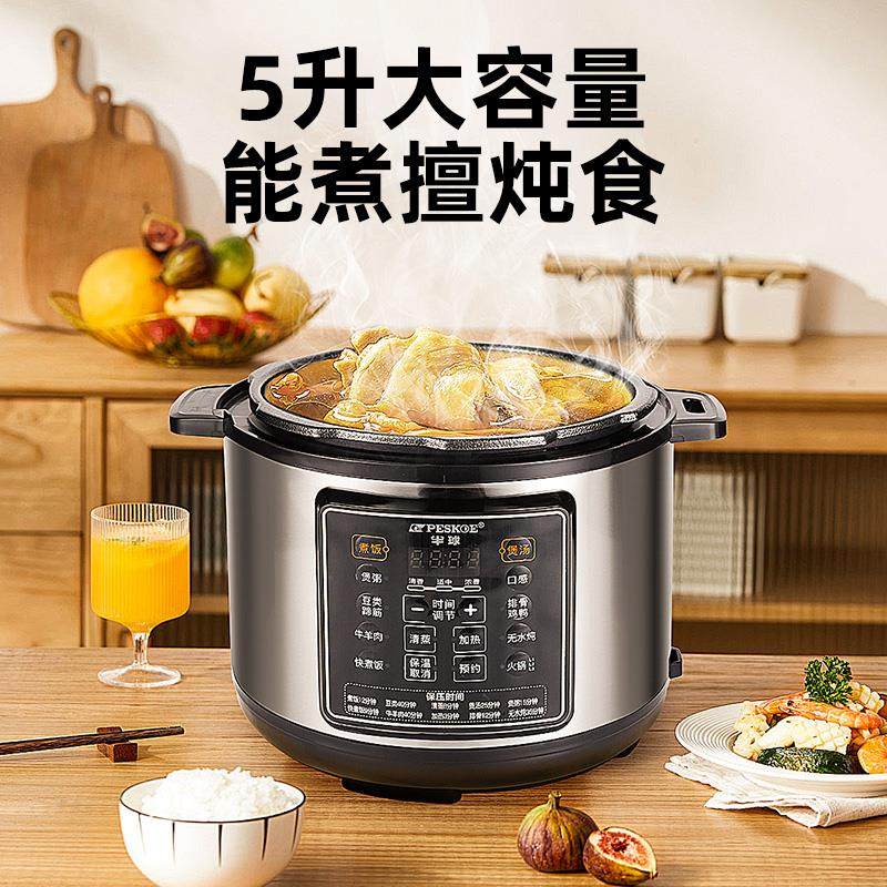 苏泊尔电压力锅家用5L大容量不粘双胆多功能智能预约高压电压锅