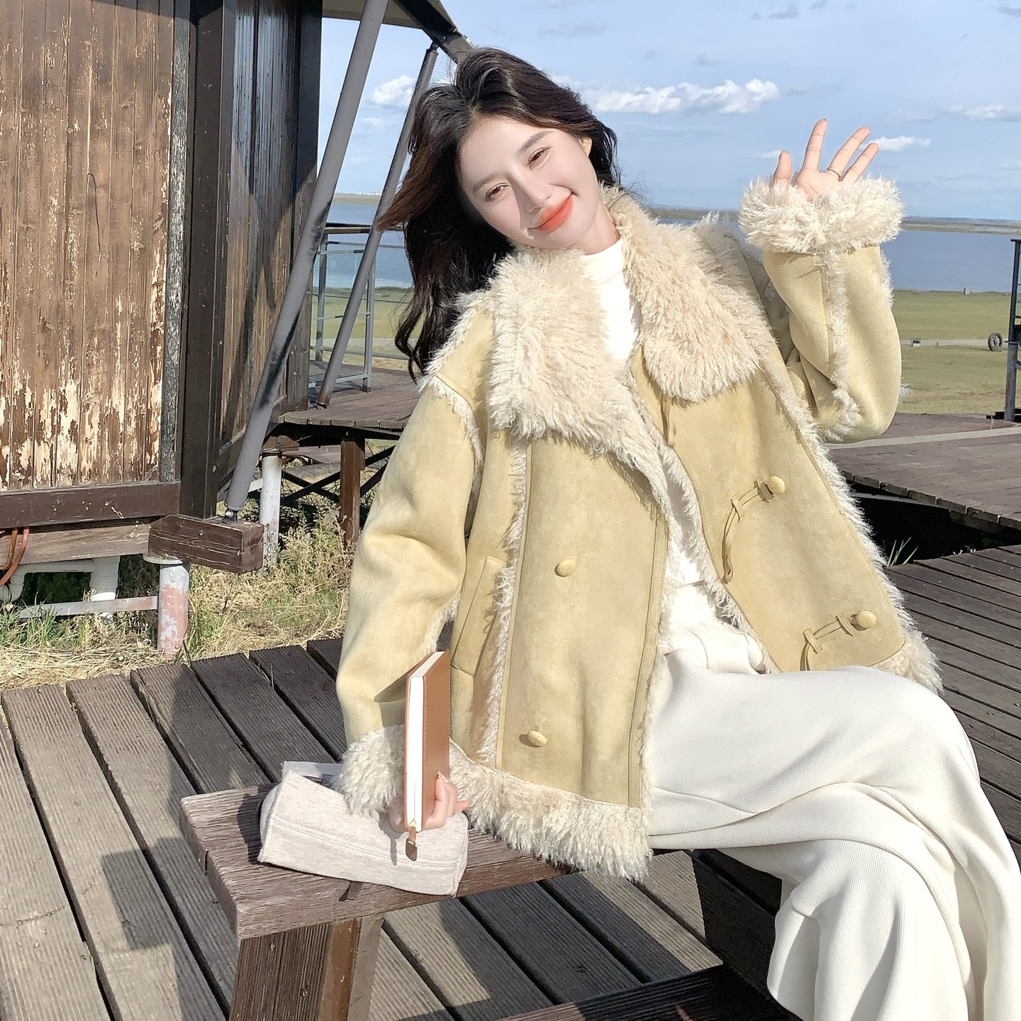 宽松连帽毛绒棉服女保暖加厚独特漂亮小棉袄外套 胖mm韩版 大码 女装