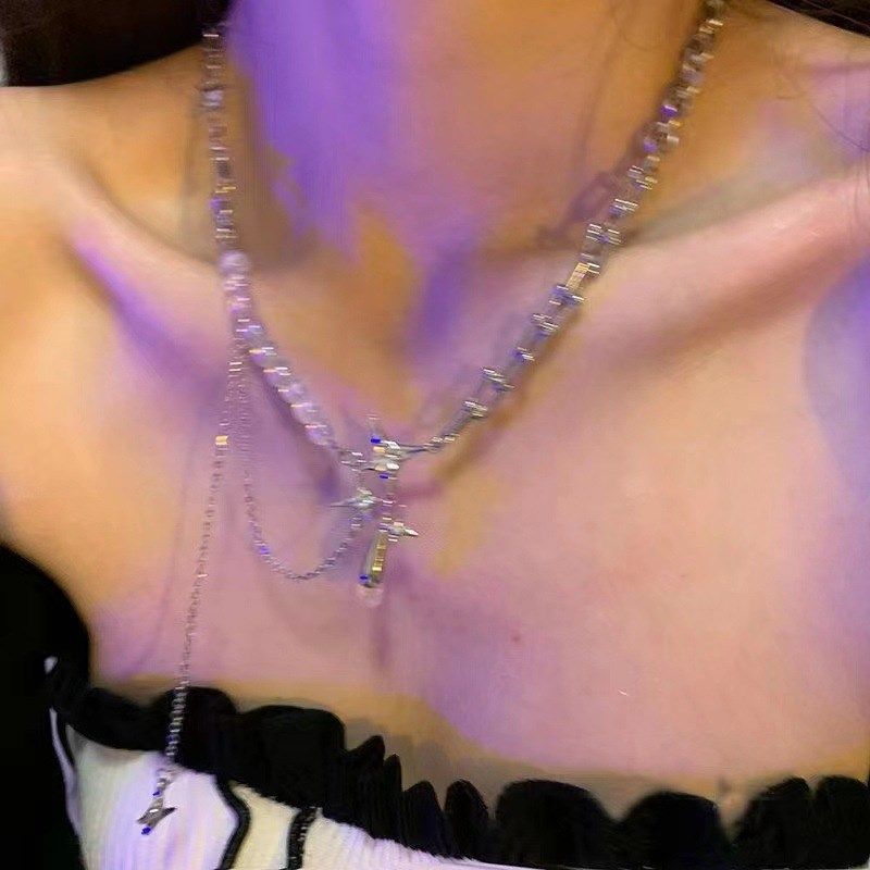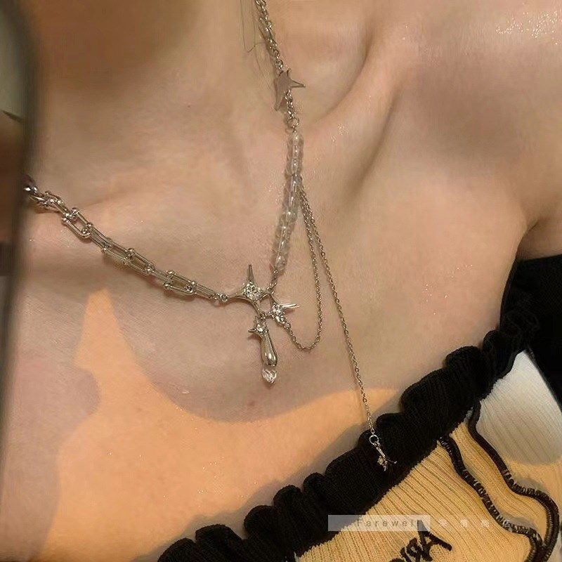 黑姑姑配饰双层十字架项链配饰女重工高级感锁骨链chocker颈链