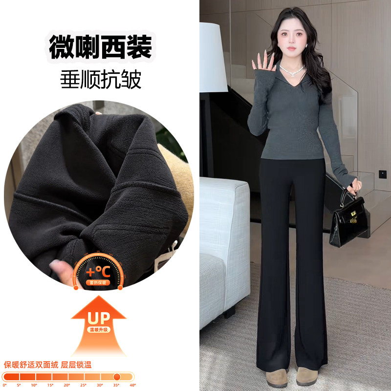 显瘦小个子加厚加绒黑色喇叭裤 抗皱微喇西装 2025新款 女秋冬季 子 裤
