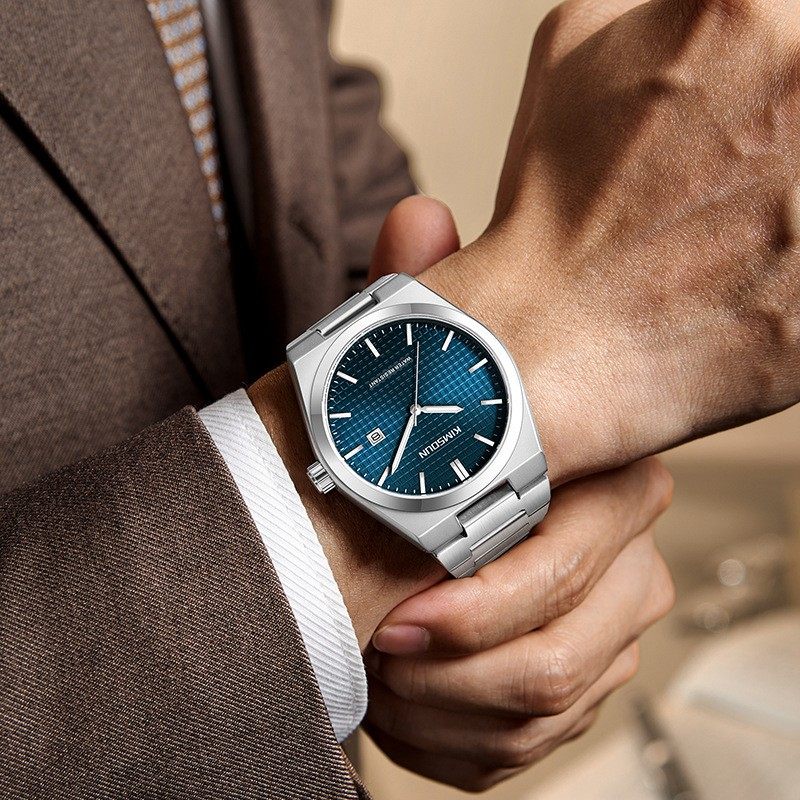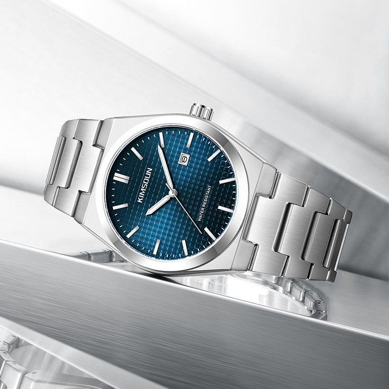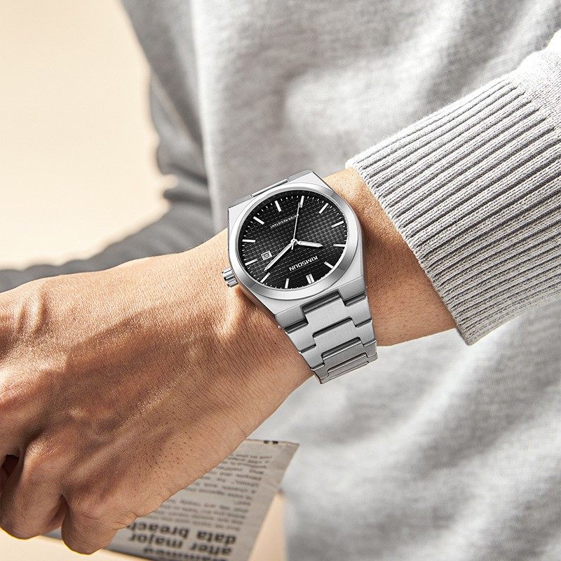 跨境金诗顿手表男士 高档商务腕表网格防水石英表潮流镂空透底男表