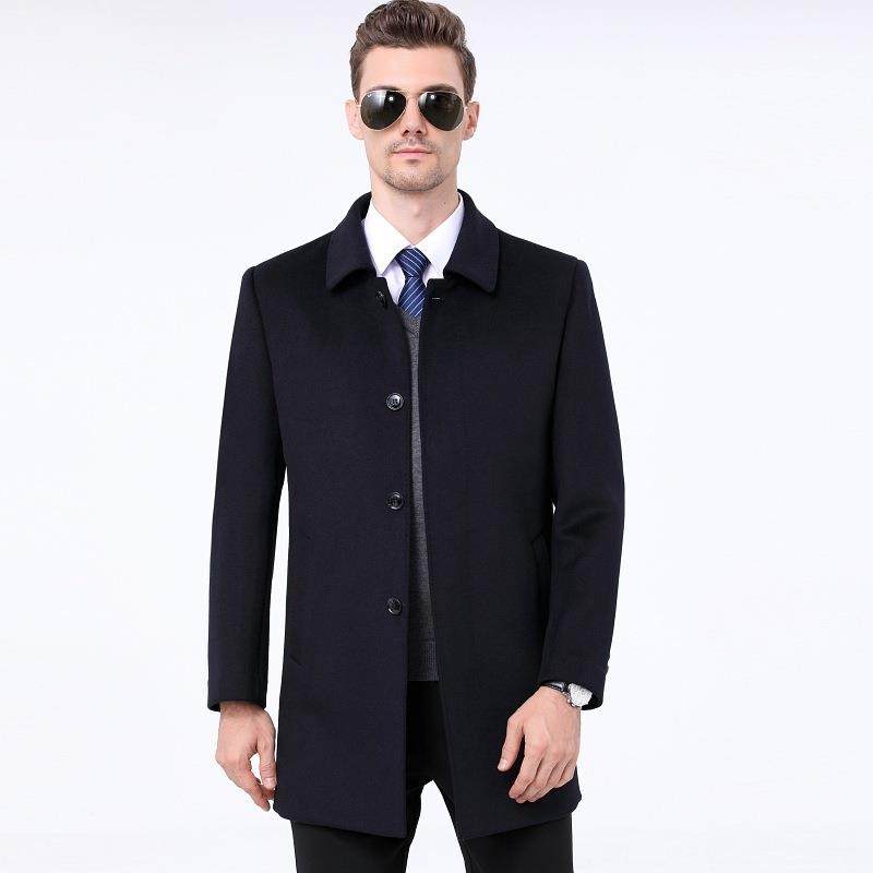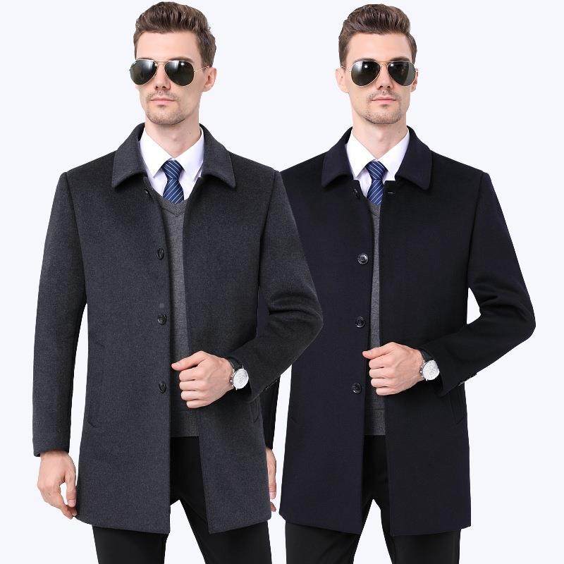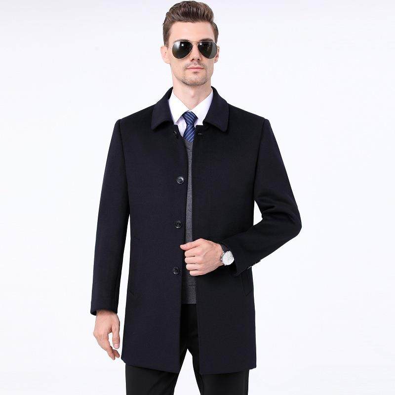 休闲翻领羽内胆羊外绒爸风衣 S绒男装 秋冬中长款 双面呢大衣爸190