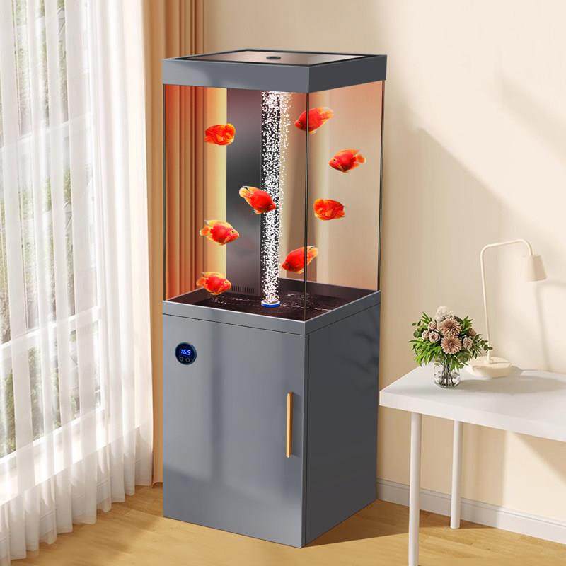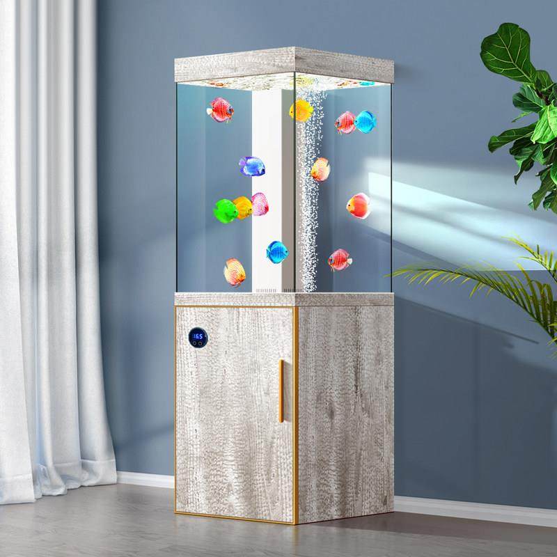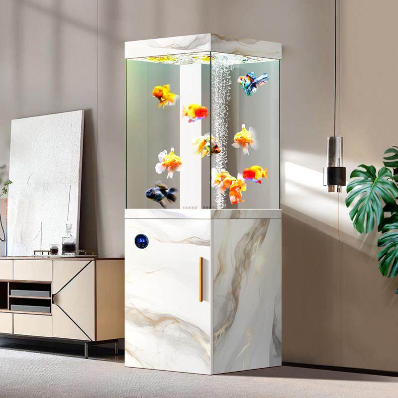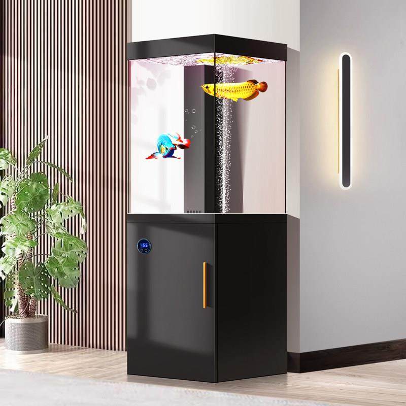 客厅家用智能超白玻璃底滤鱼缸水族箱简约生态落地立式 方形金鱼缸
