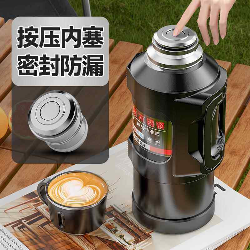 316全钢开关大容量保温壶不锈钢保温杯户外旅行壶便携把手热水壶