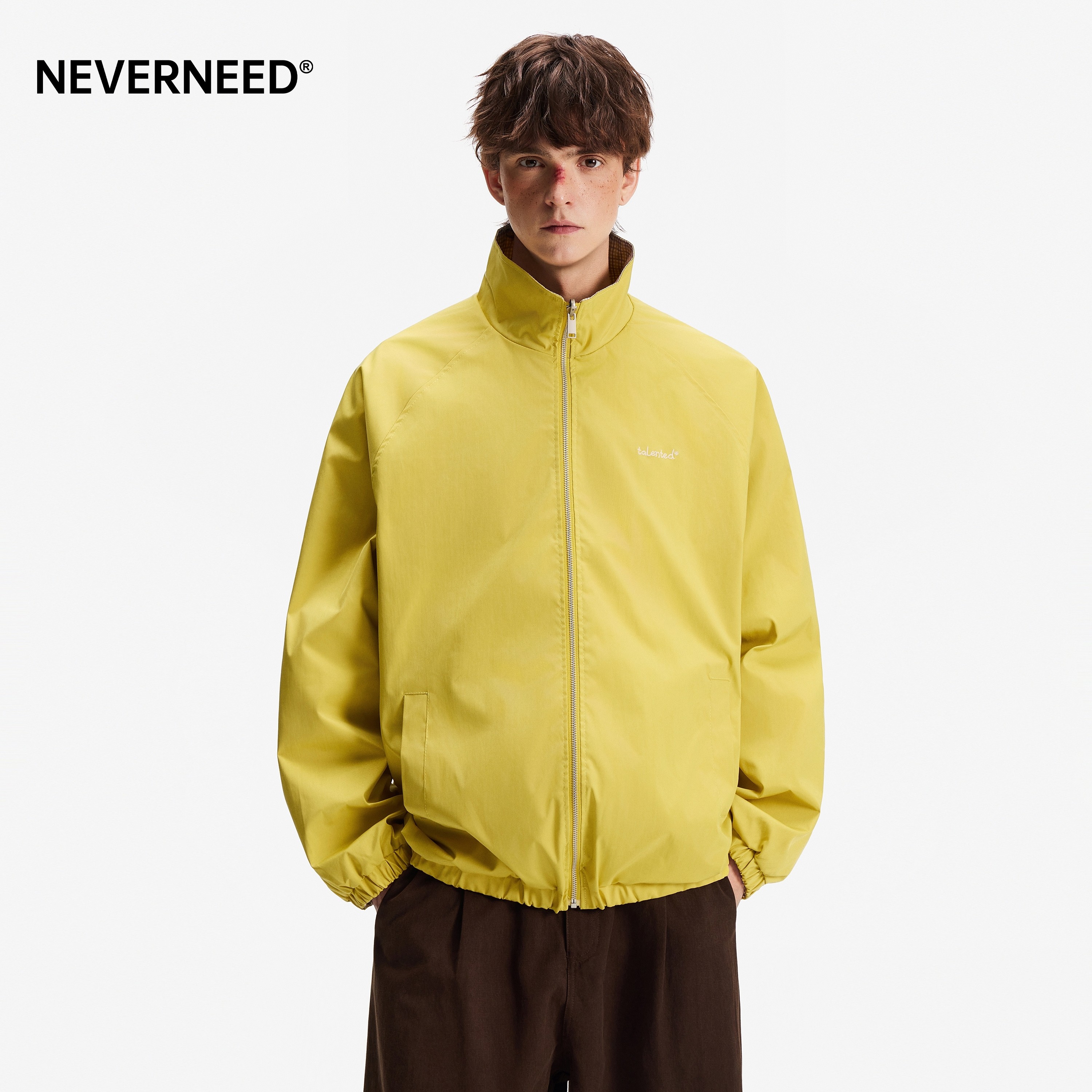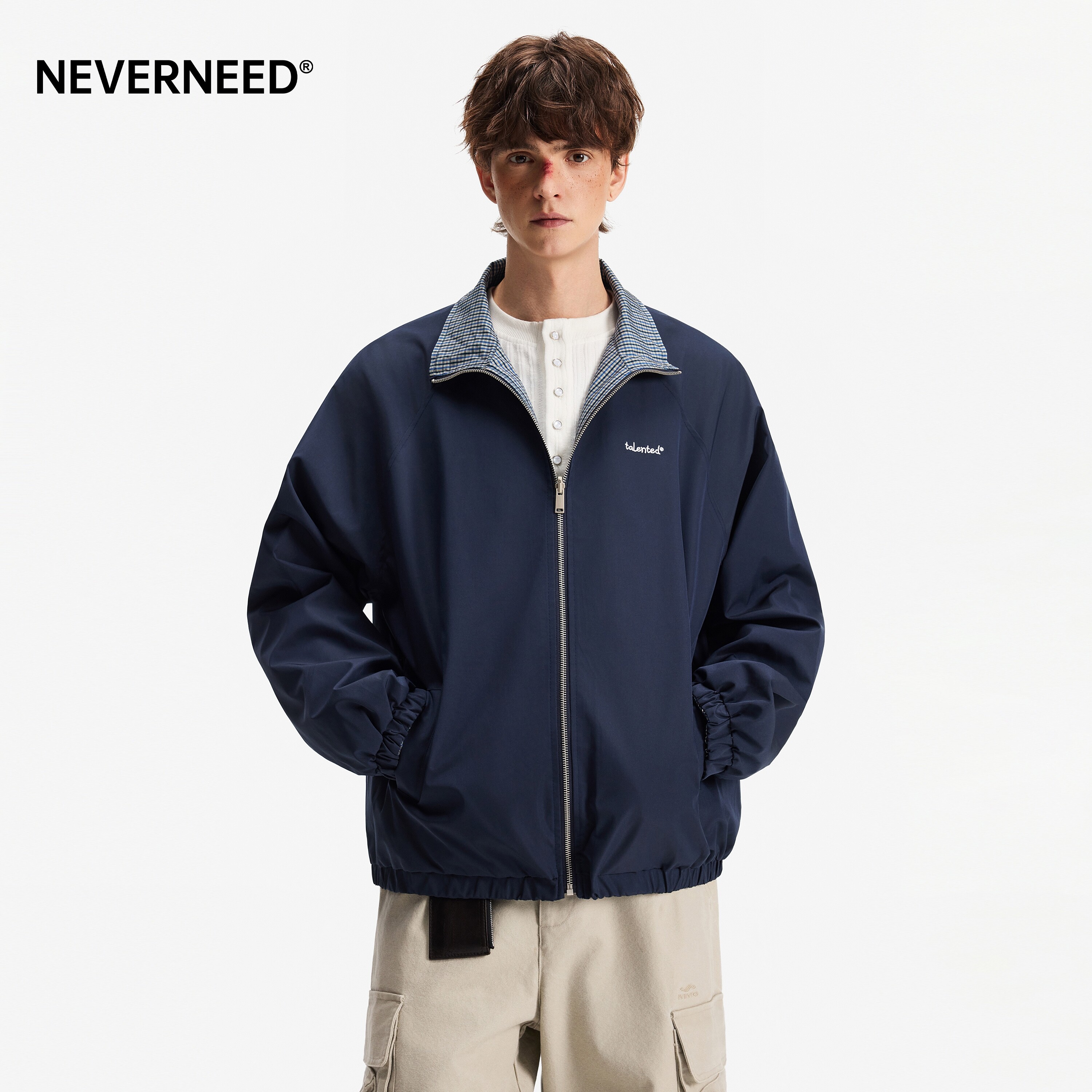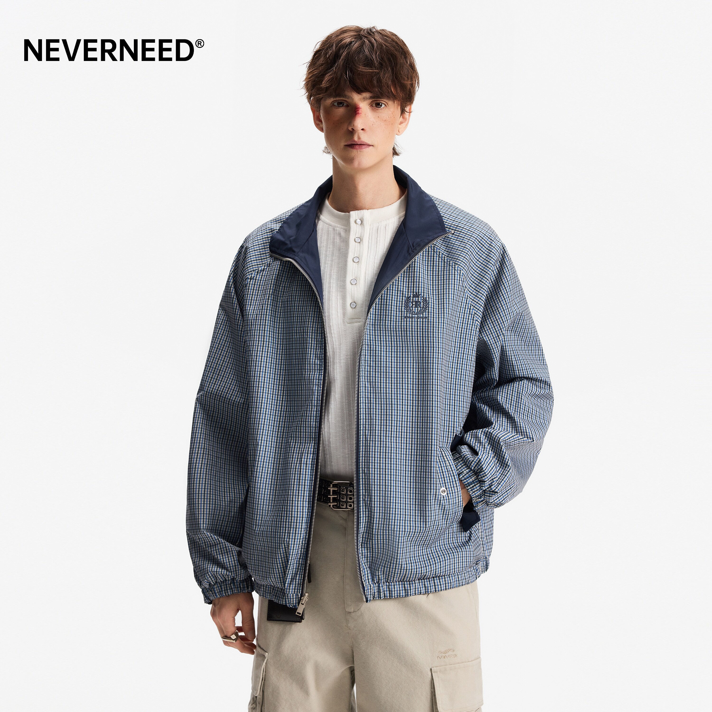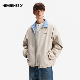 NEVERNEED双面穿翻领夹克外套男女春季 cleanfit潮牌刺绣上衣 美式