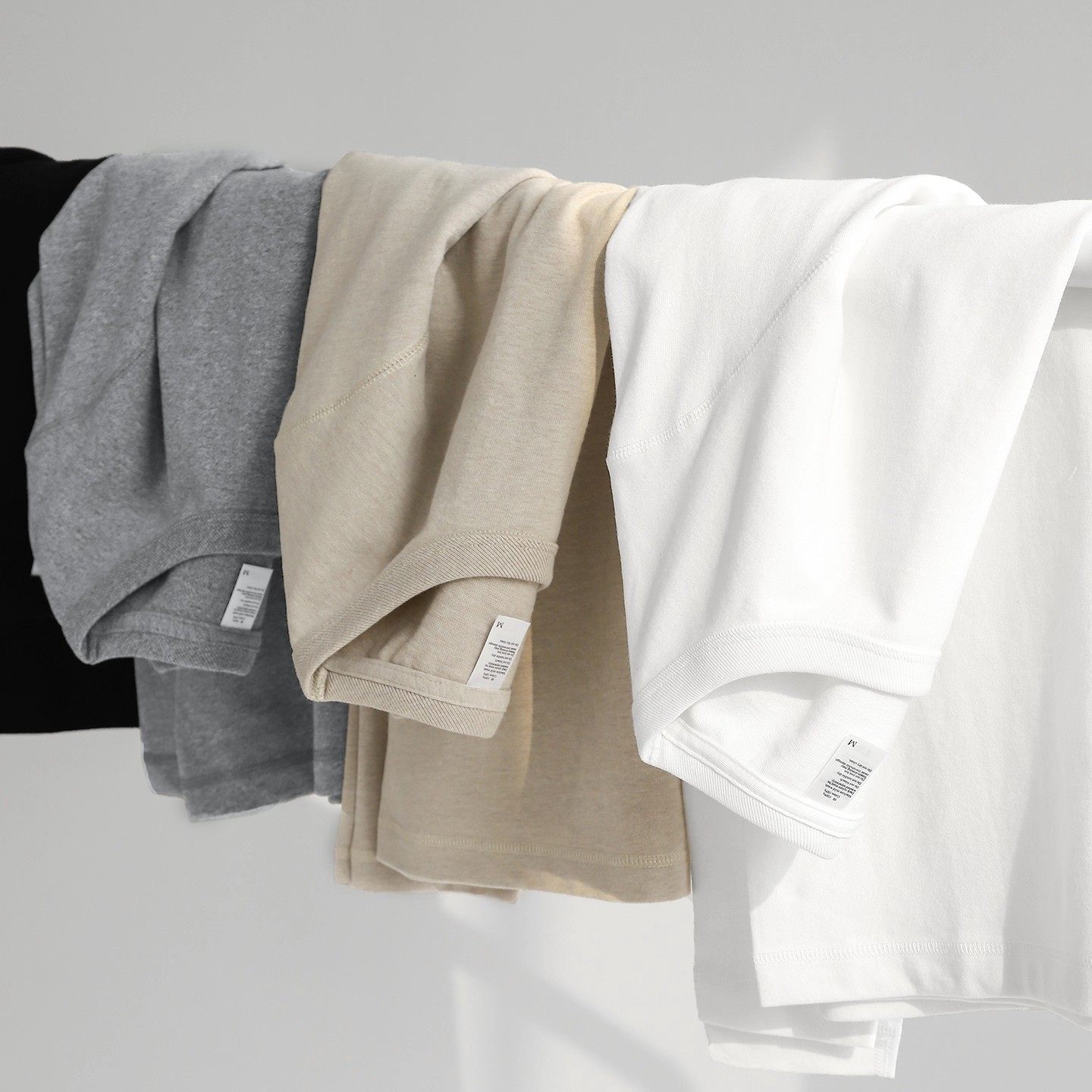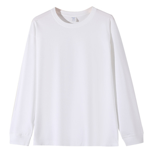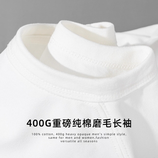 男女款 新疆纯棉400g重磅白色圆领长袖 t恤秋冬厚实不透内搭打底衫