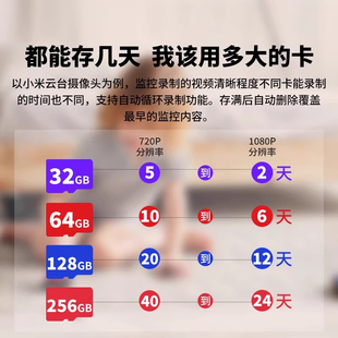 适用小米监控摄像头内存卡128g家用存储卡高速fat32专用sd卡TF卡