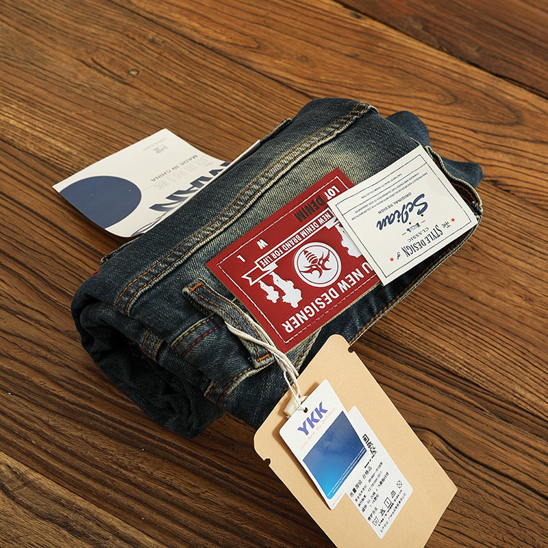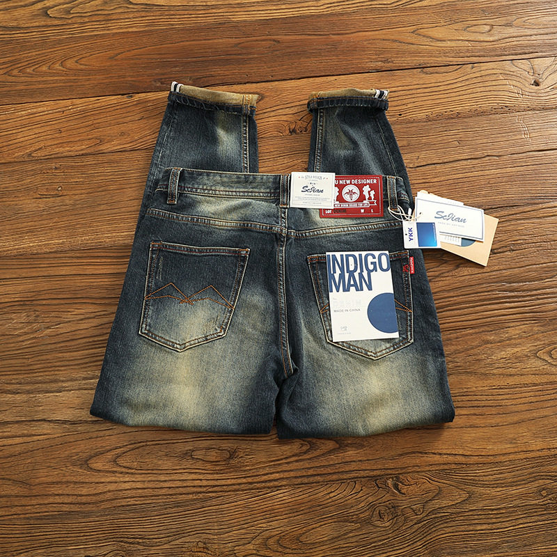 2025秋冬新款 男黑色宽松直筒加绒长裤 复古丹宁原色牛仔裤 Mmel美式