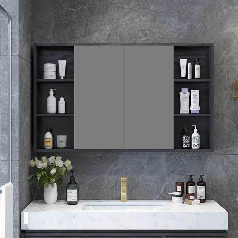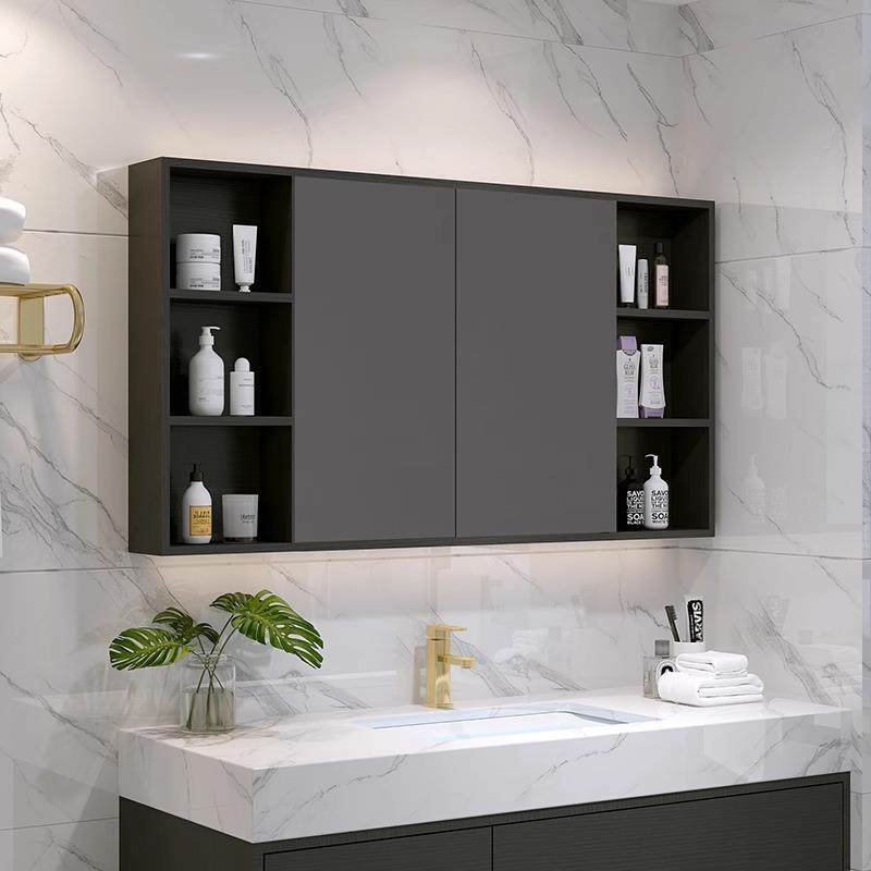 浴室镜柜挂墙式 带置物架碳纤维卫生间镜子简约洗漱台收纳柜储物单