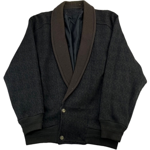 毛呢夹克男翻领印花设计感2025秋冬季 加绒呢子厚外套英伦雅痞男装