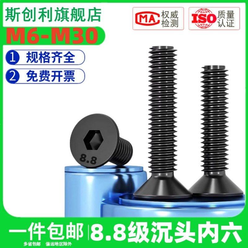 8.8级国标沉头内六角螺栓碳钢发黑平头螺丝平杯内六螺丝 M6M8M10