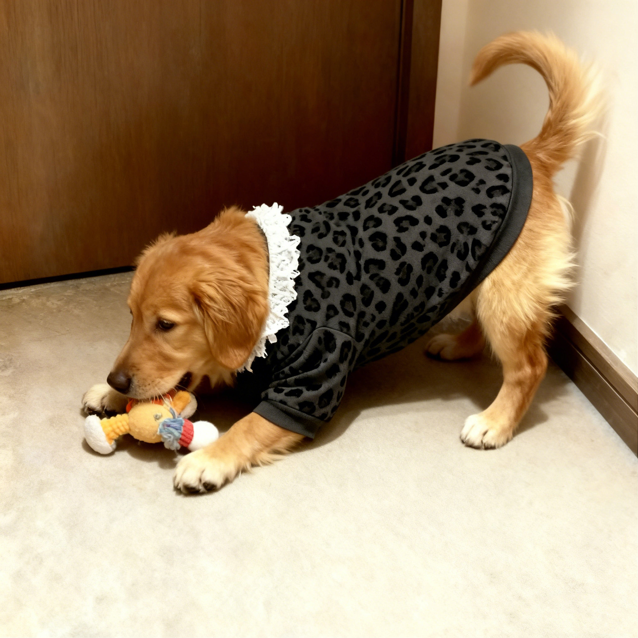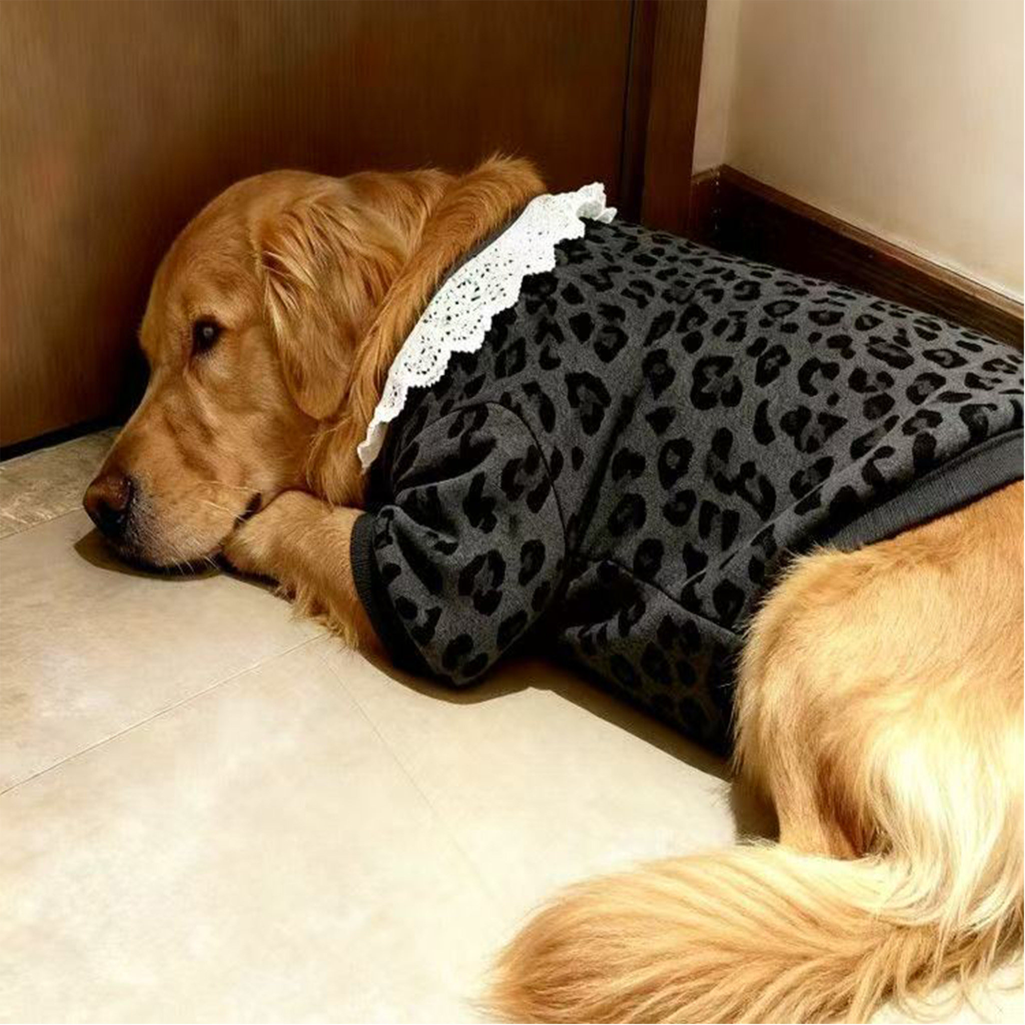 25狗狗新款 衣服防冻黑灰豹纹白色领口秋冬两脚衣金毛萨摩保暖