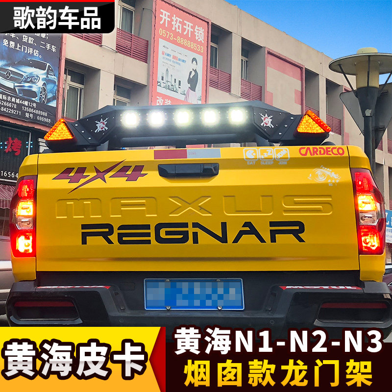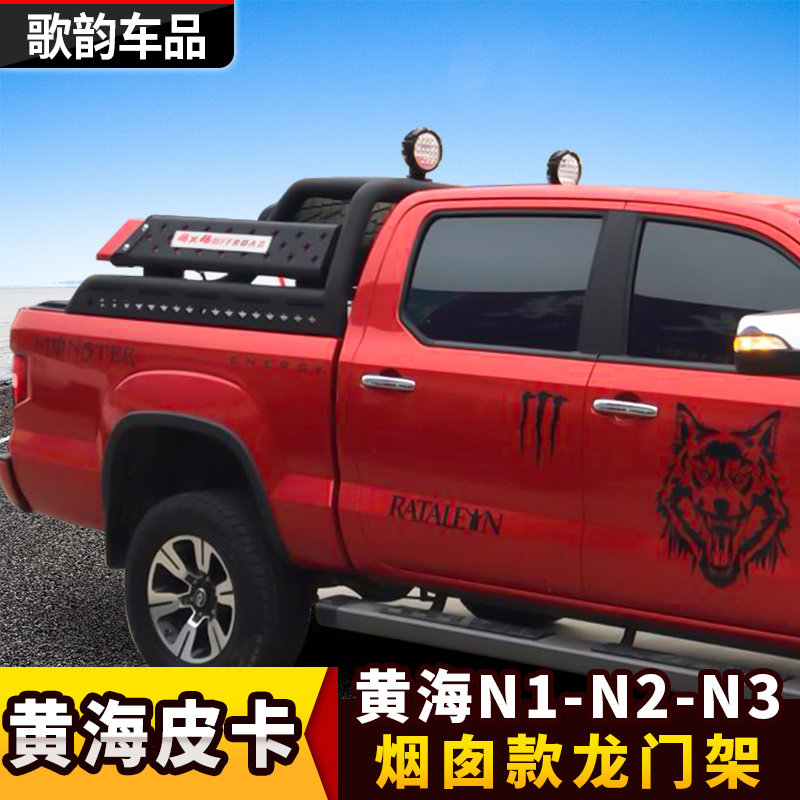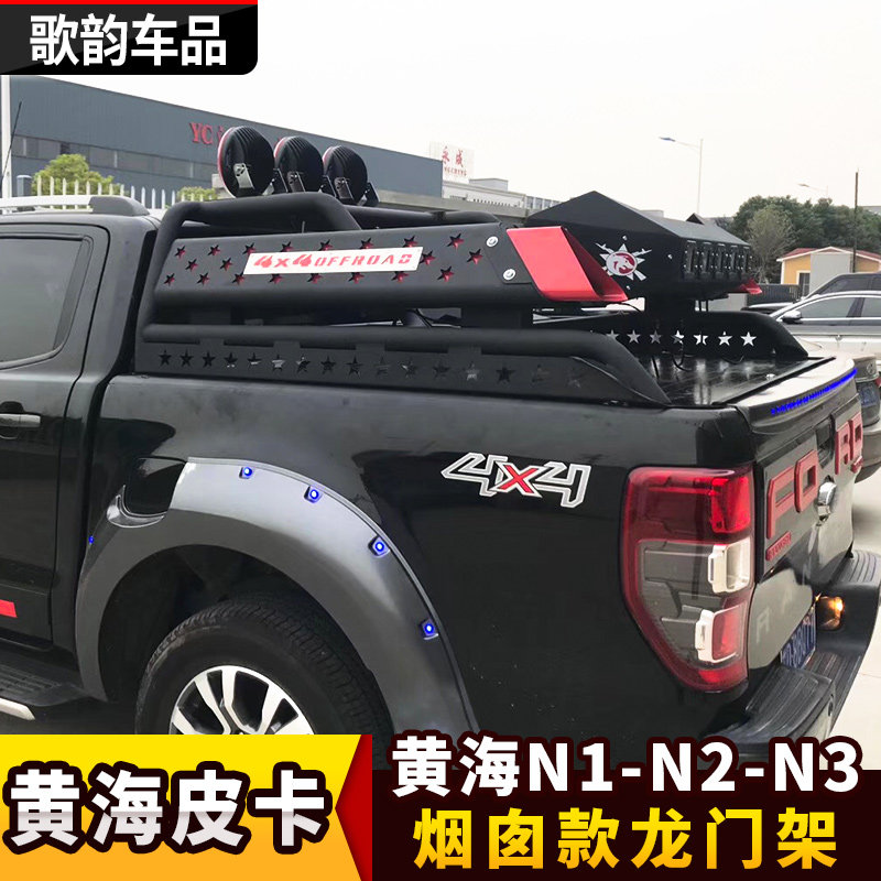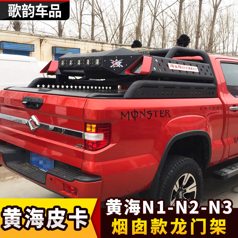 黄海N3烟囱防翻架N1N2带LED灯龙门架防滚架后箱盖皮卡越野改装