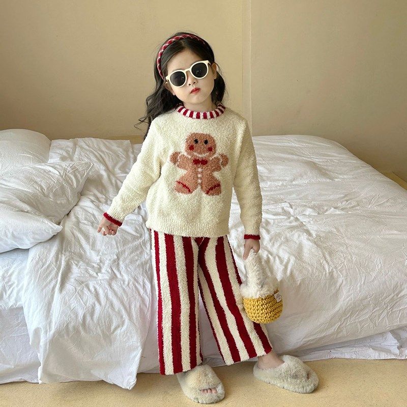 居家服冬 加厚可外穿长裤 sofu软糯坑条半边绒家居服睡衣套装 女冬季