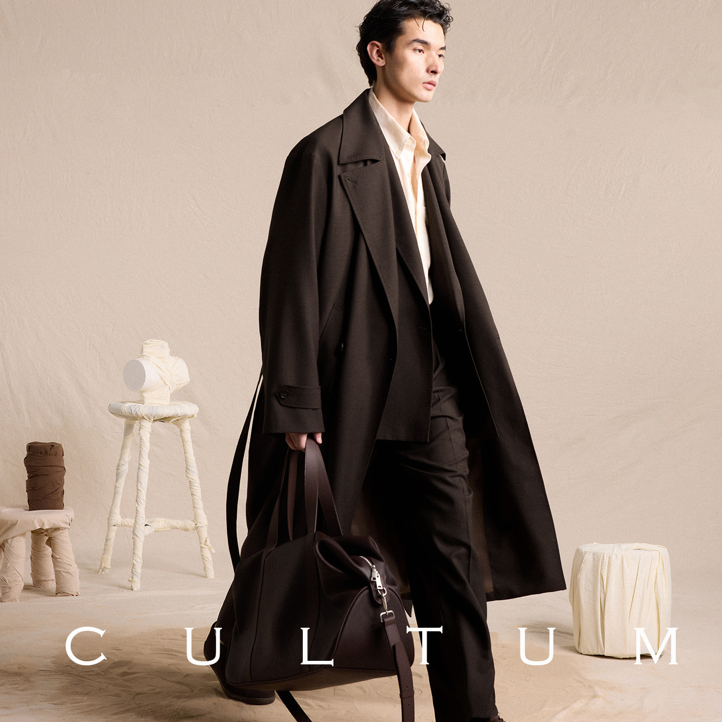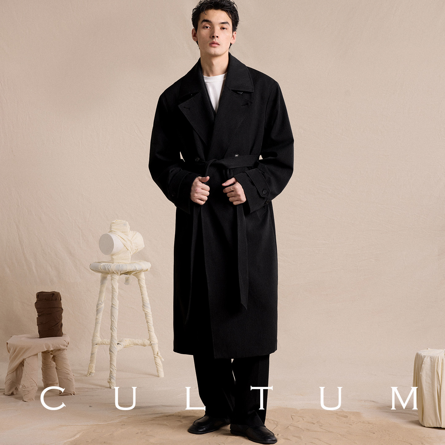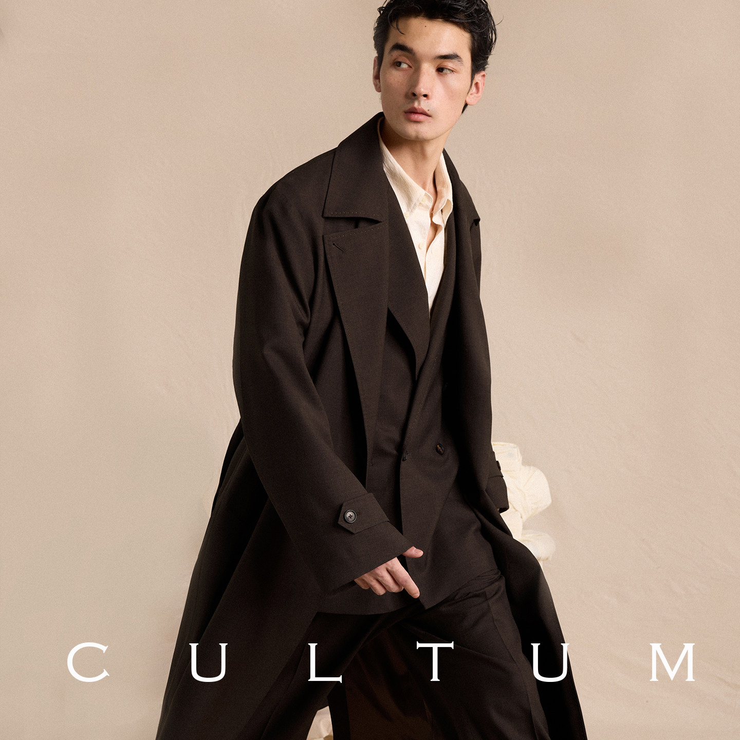 CULTUM松弛感双排扣长款 垂坠有型 风衣男休闲外套 耐穿易打理