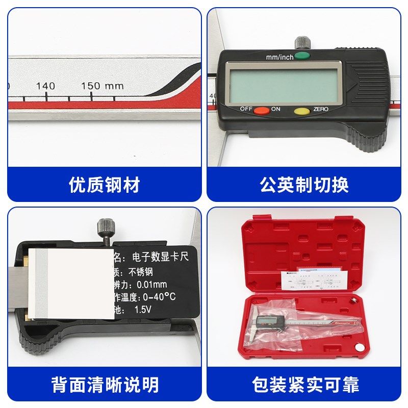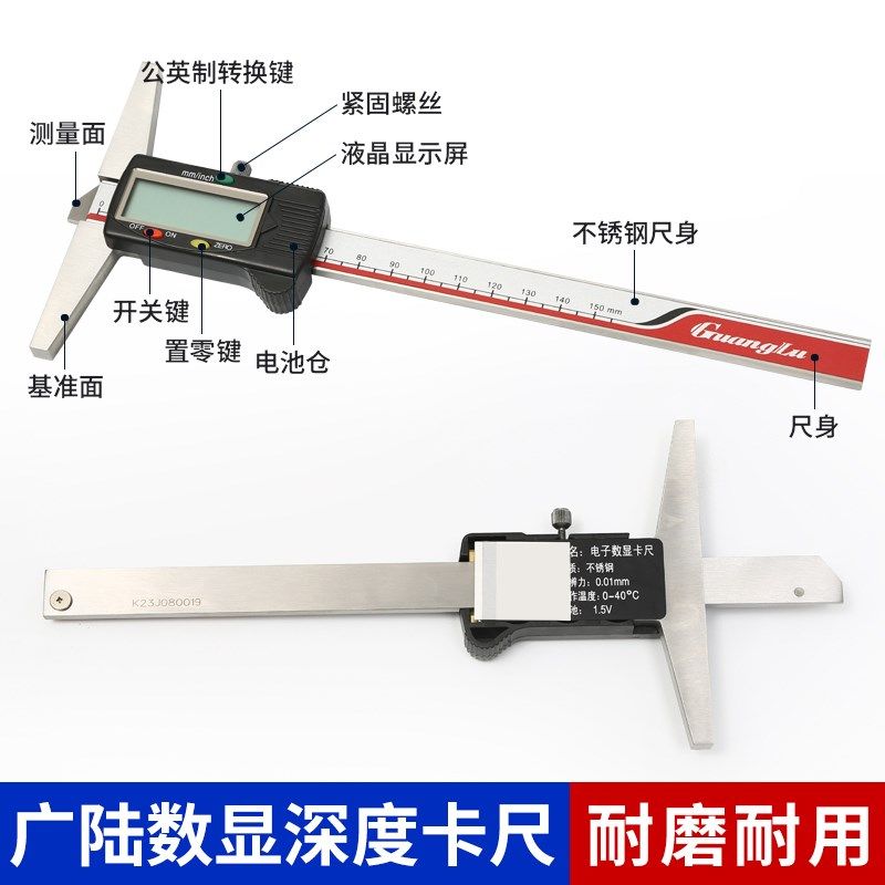 广陆数显深度卡尺电子数显金属壳0 300mm数显高精度数字卡尺 200