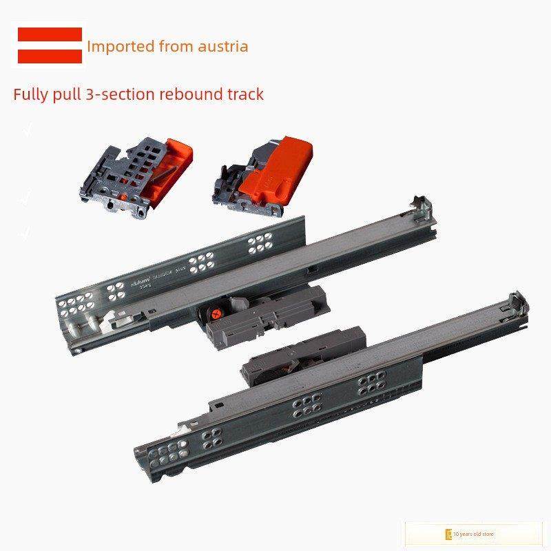加厚抽屉滑轨不锈钢静音三节轨橱柜阻尼缓冲导轨衣柜滑道反弹轨道