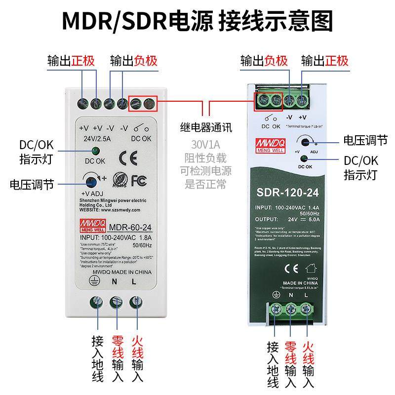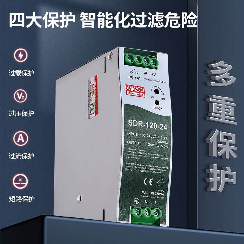 开关电源MDR 100 120 240W 12明伟24v直流导轨式 SDR