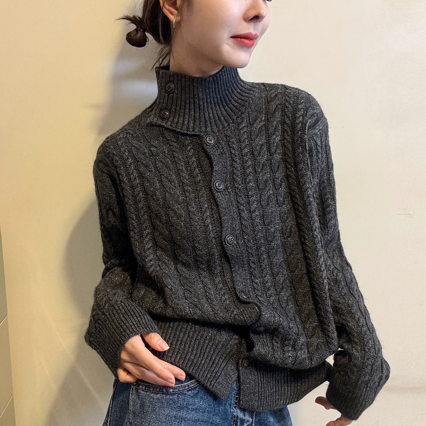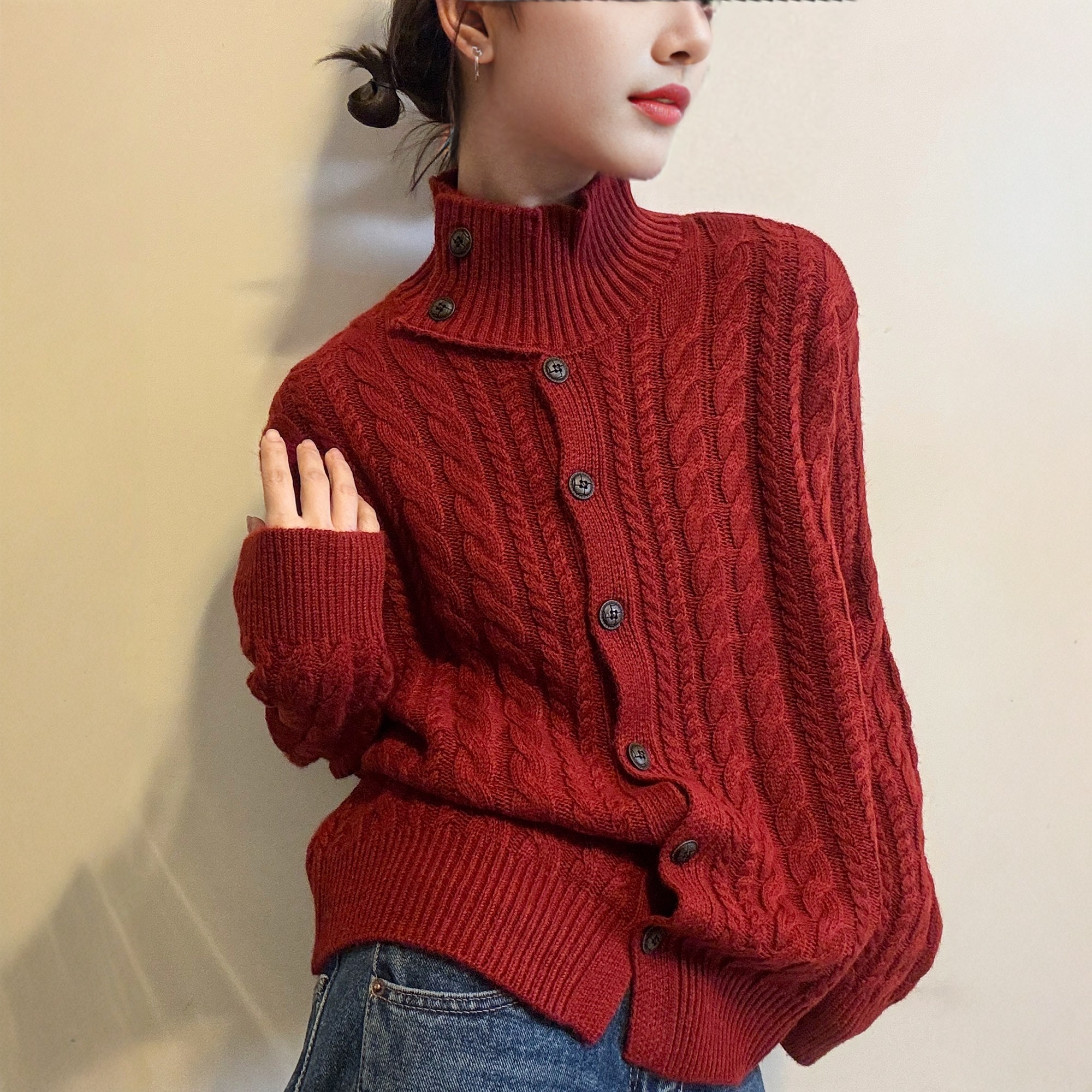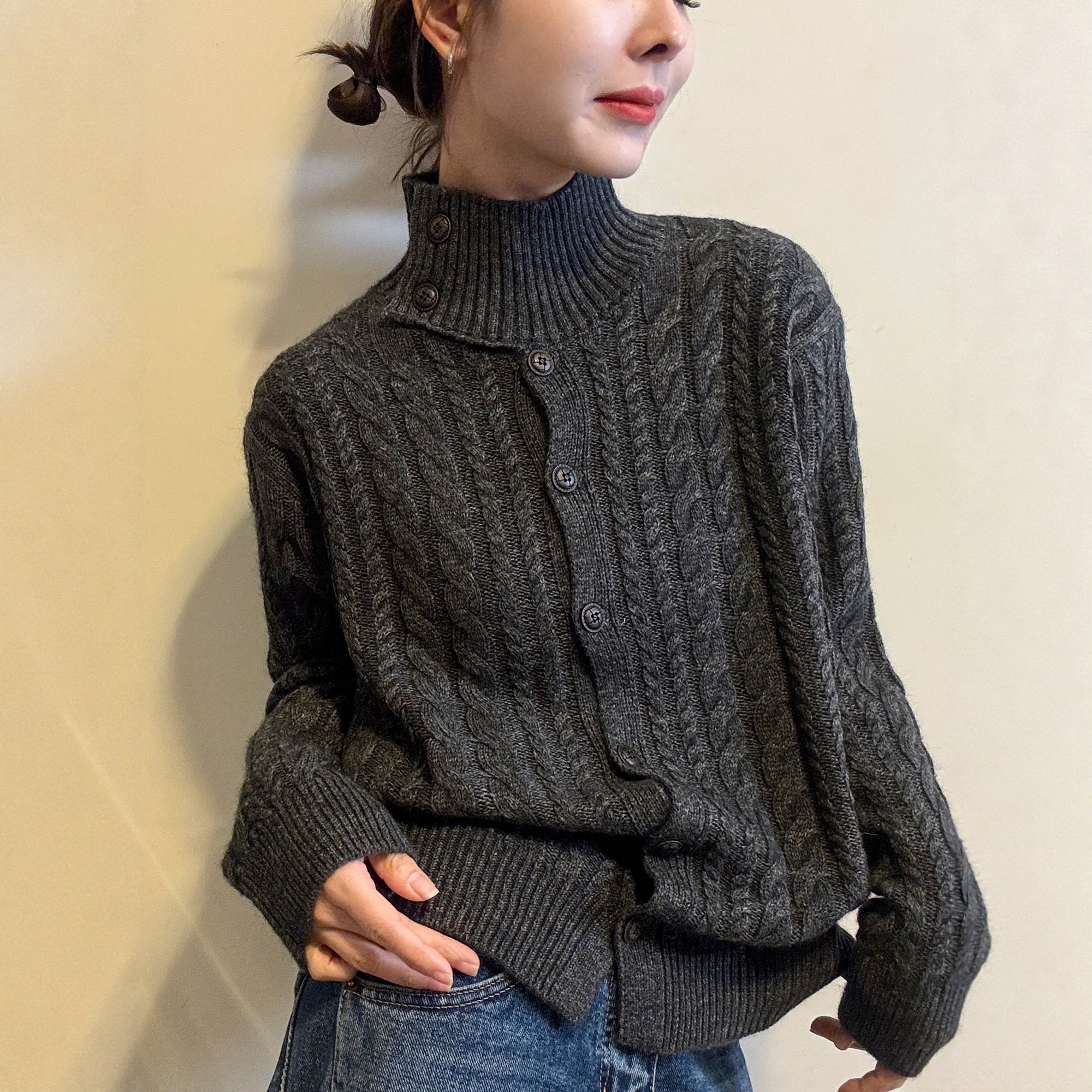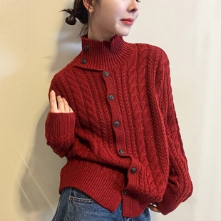 欧货女装 新款 毛衣外套潮 女欧洲站2025冬装 麻花纹高领羊毛针织开衫