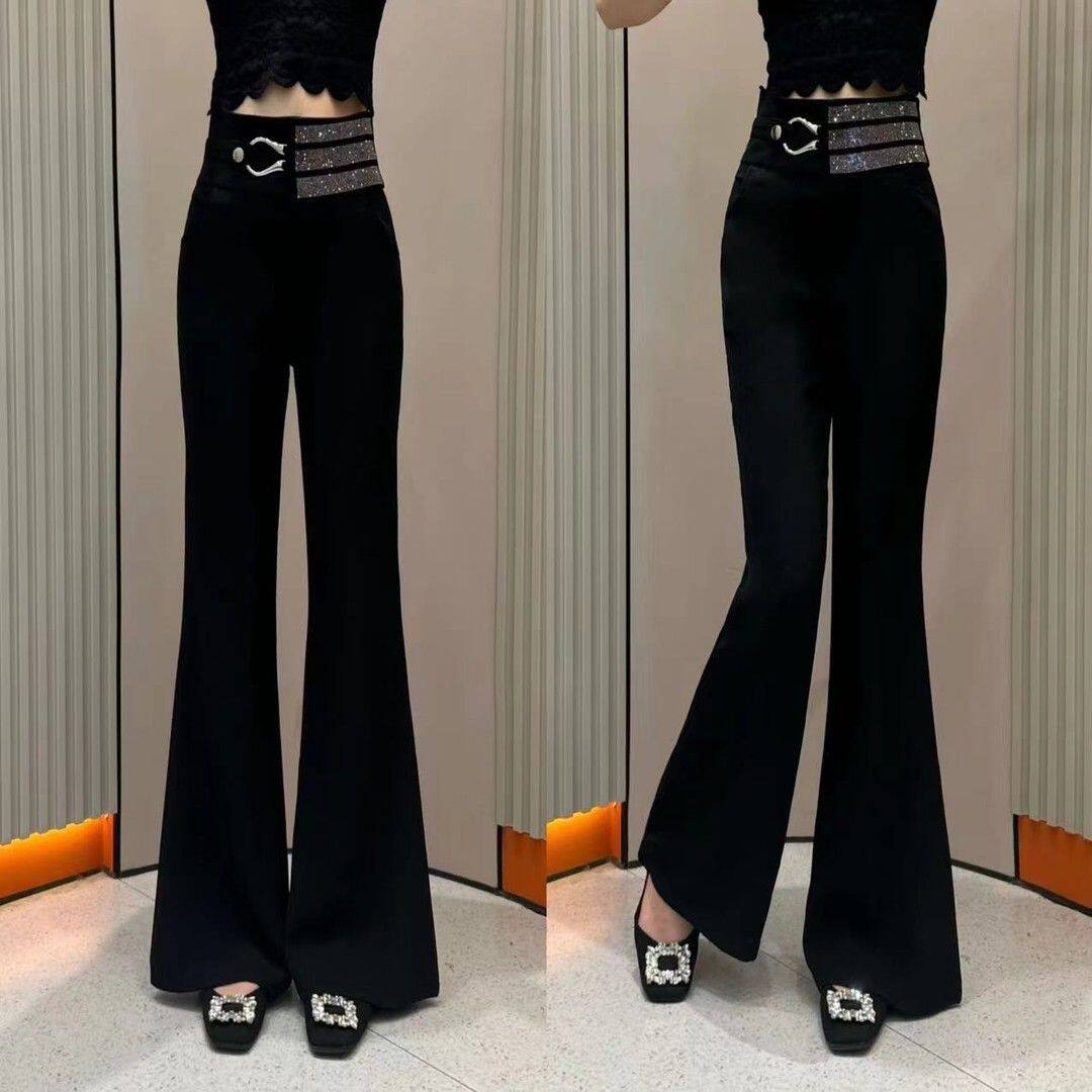 女 显瘦百搭休闲裤 2025秋冬加绒重工高腰仿钻垂感微喇叭裤 加厚修身