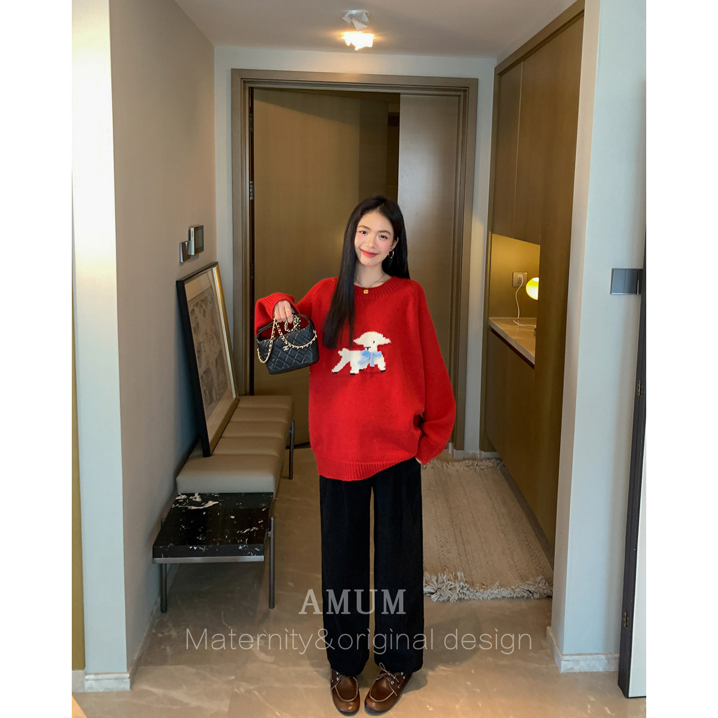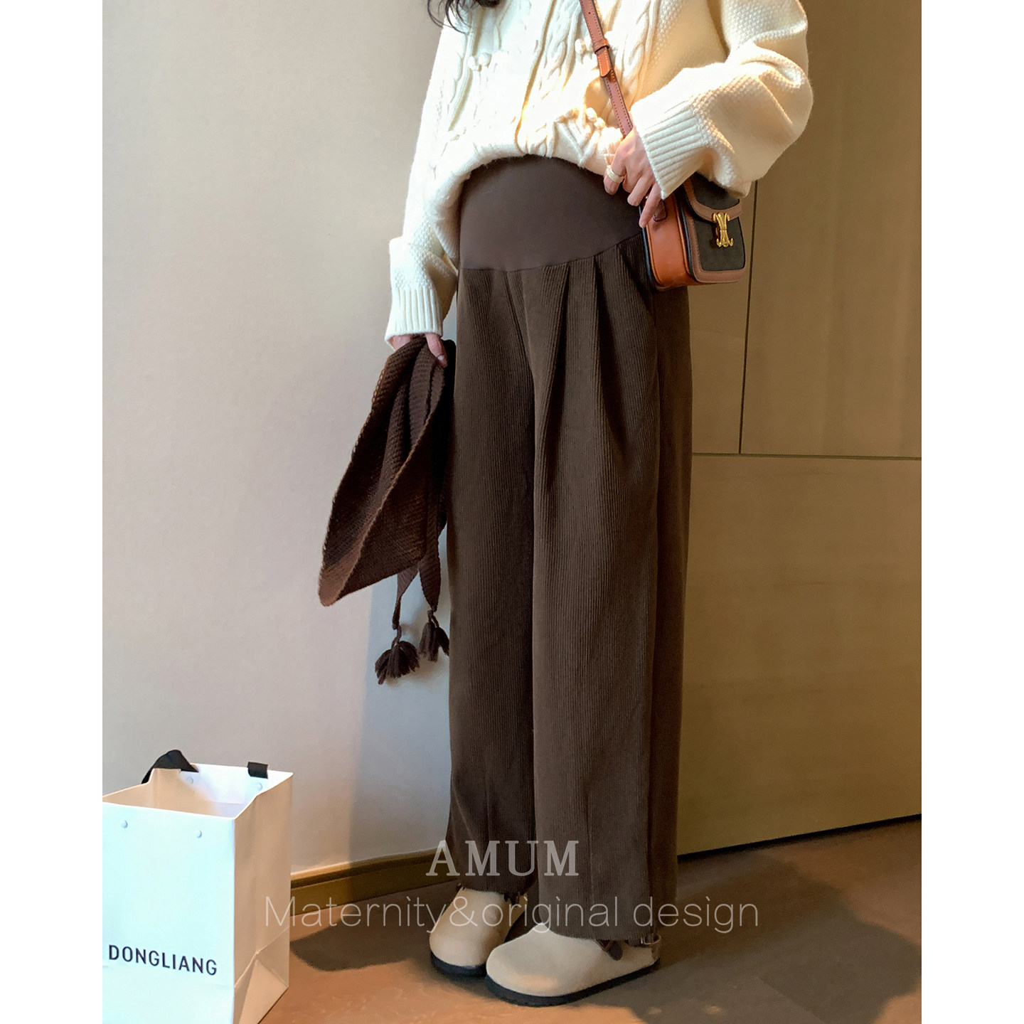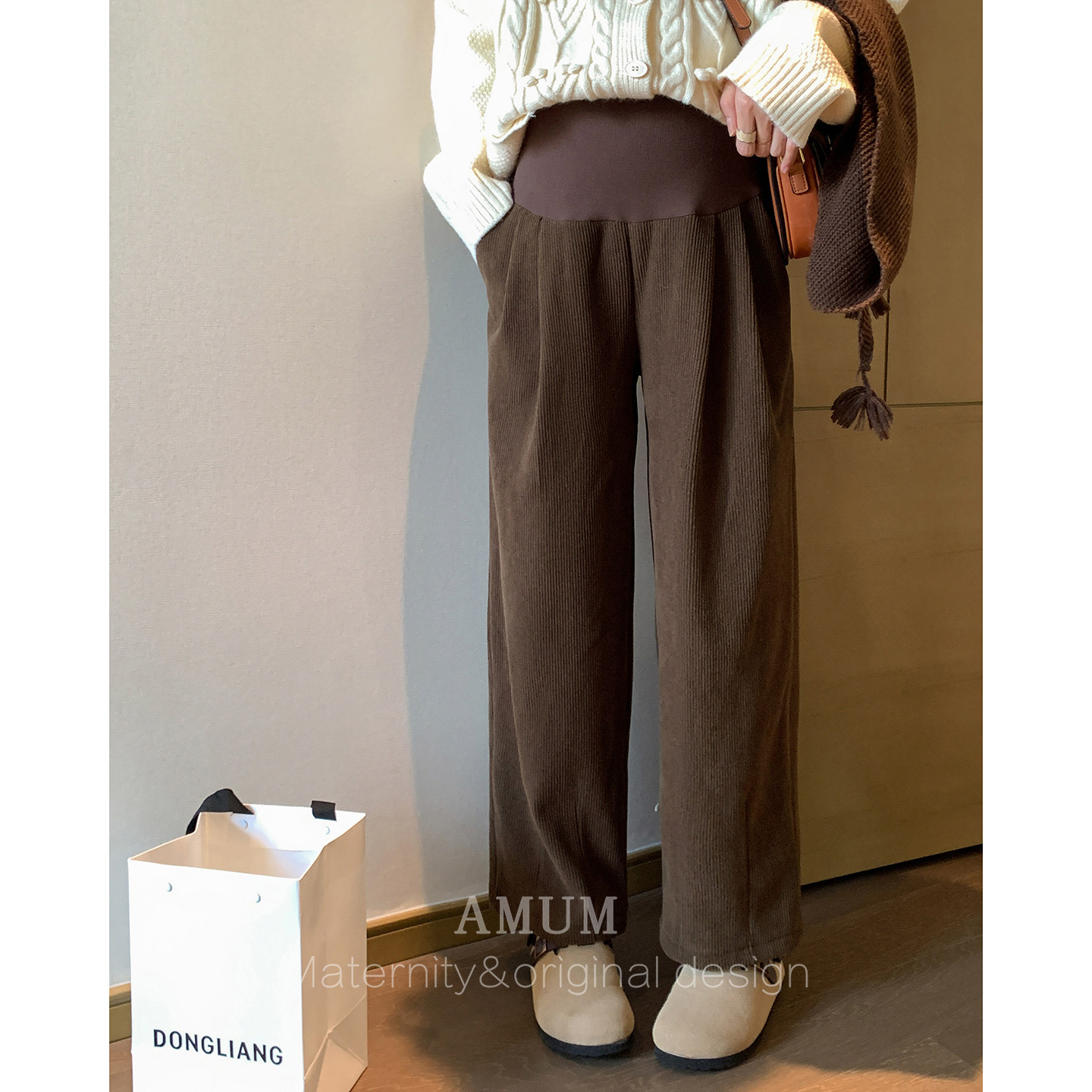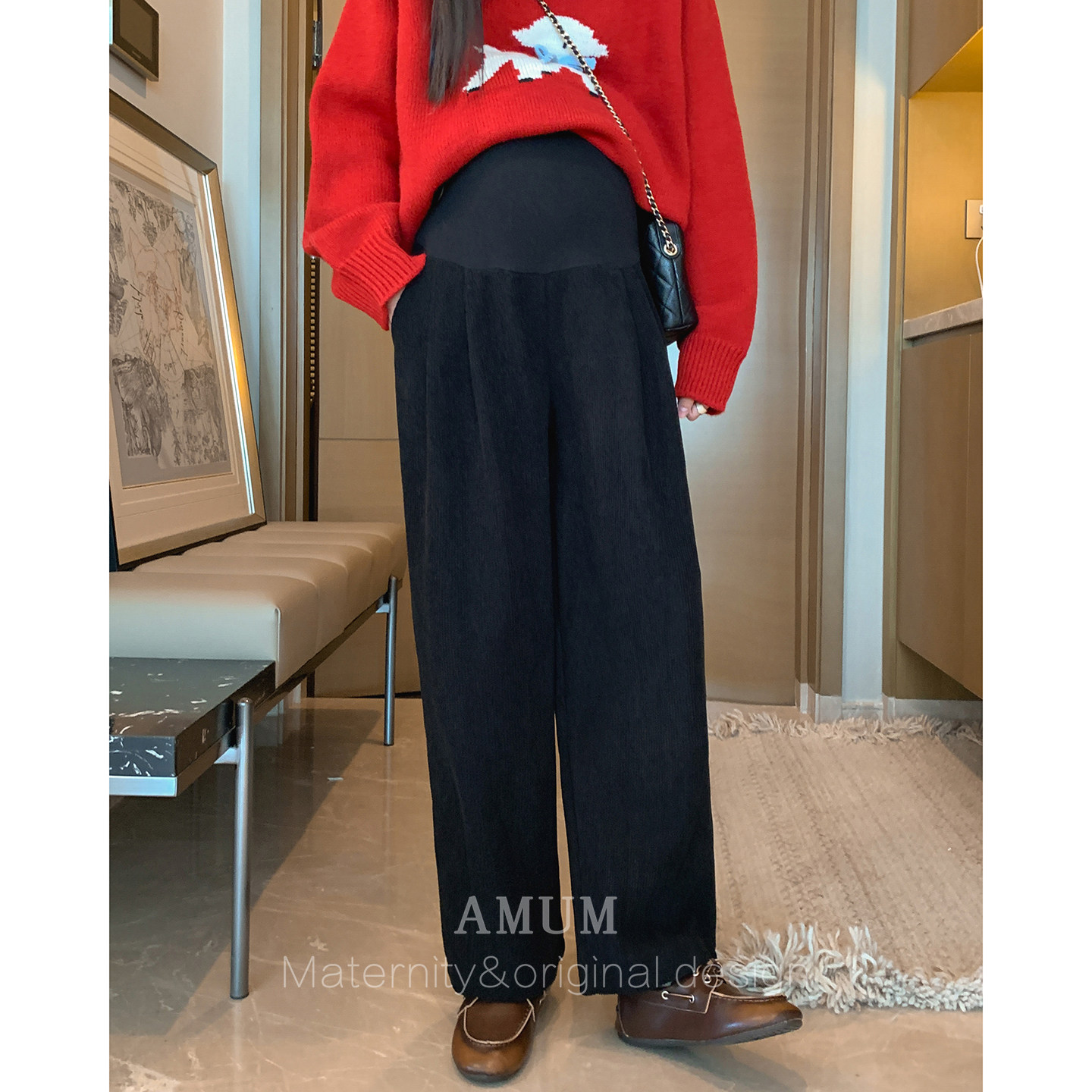 时髦老钱风宽松直筒加绒慵懒感奶奶裤 懒人万能搭 AMUM孕妇装