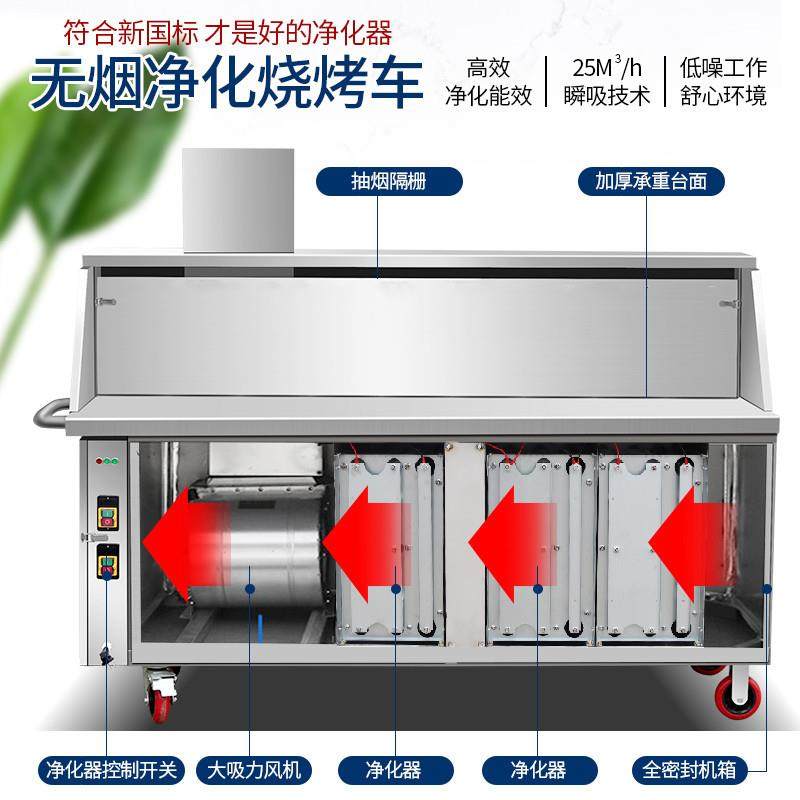 无烟烧烤车木烧烤545炉商用吸环保化大型移动摆摊炭净器平风款 烧