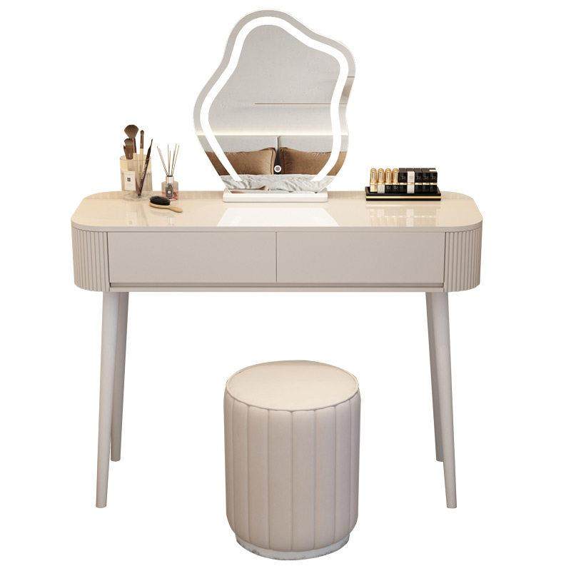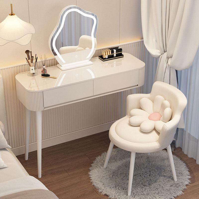 2025新款 加厚实木烤漆梳妆台卧室现代简约高级感化妆桌中古奶油风