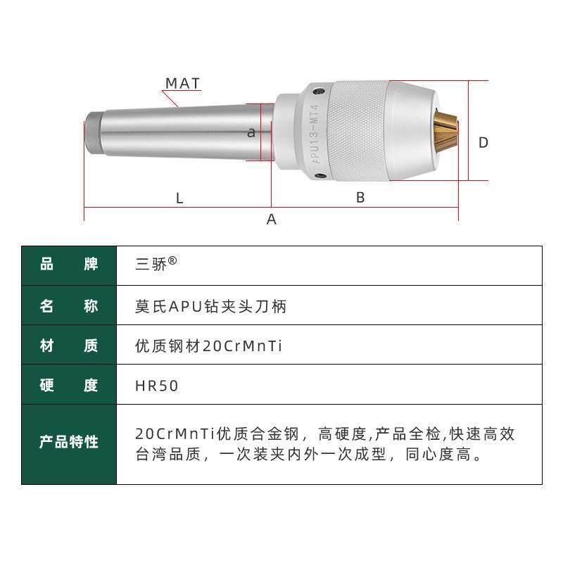 MT2 莫氏铣床一体式 APU13 钻夹头加硬款 16钻夹头刀柄 自紧式