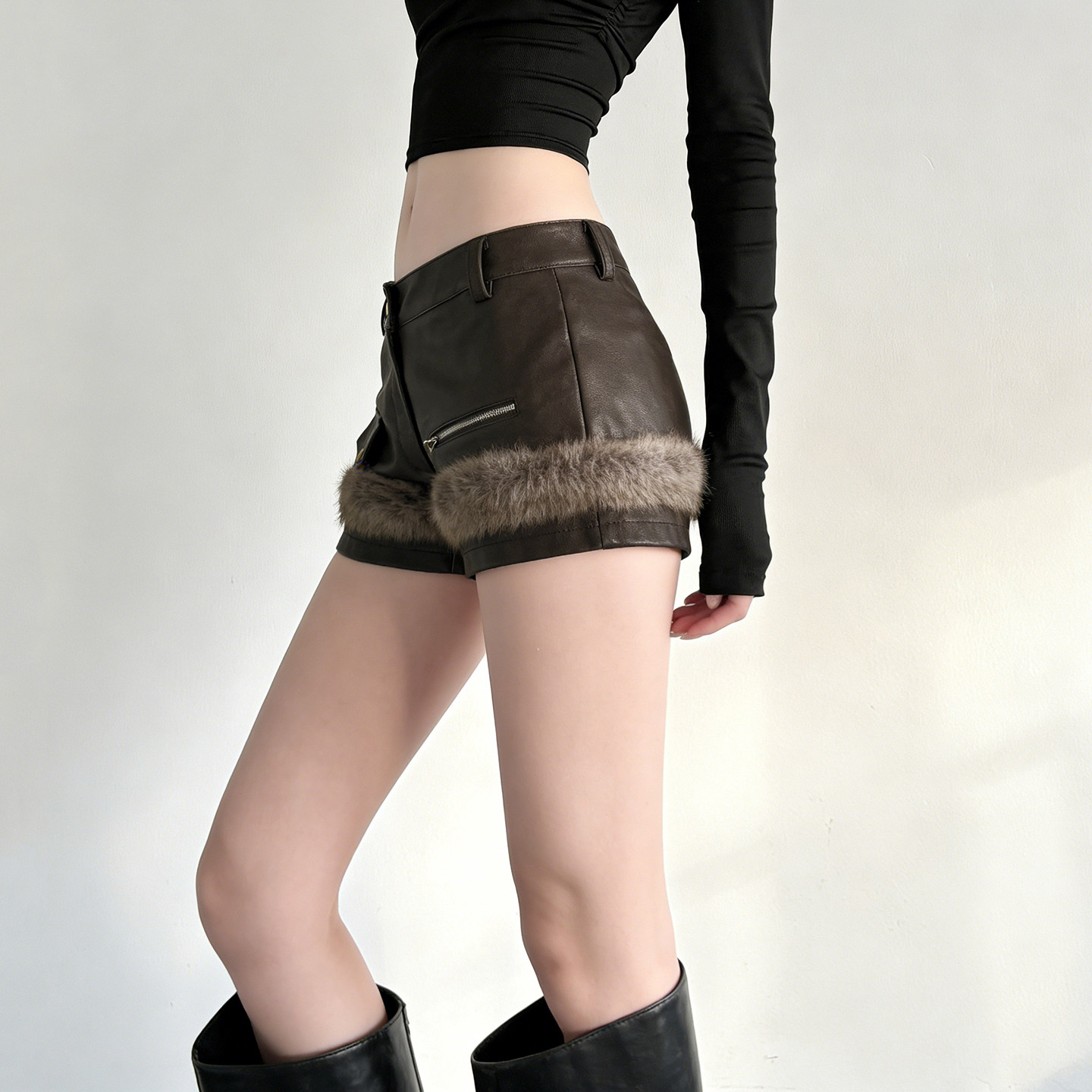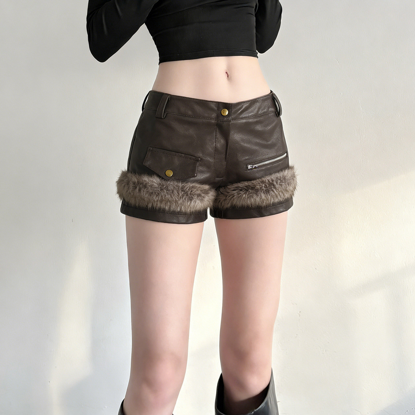 阔腿小个子黑色外穿靴裤 皮短裤 高腰显瘦百搭皮裤 新款 女2025秋冬季
