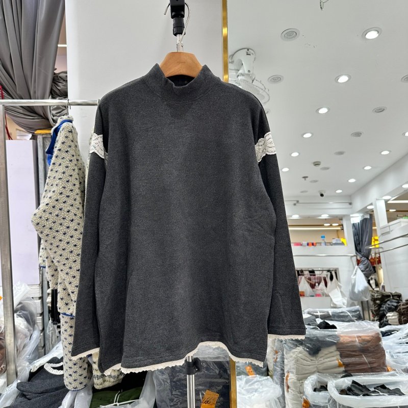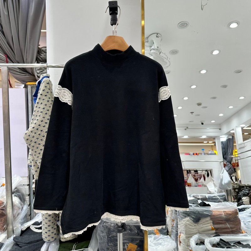 双面德绒慵懒风T恤衫 拼接蕾丝花边中长款 女潮 韩版 Miss.Q3213新款