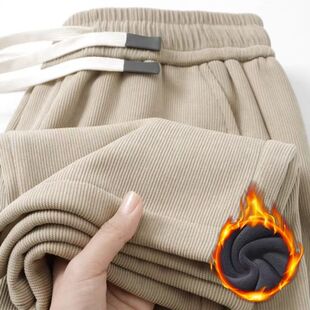秋冬保暖舒适垂感休闲长裤 女士加绒加厚灯芯绒宽松百搭外穿直筒裤