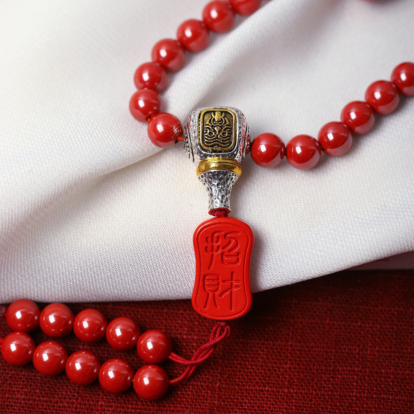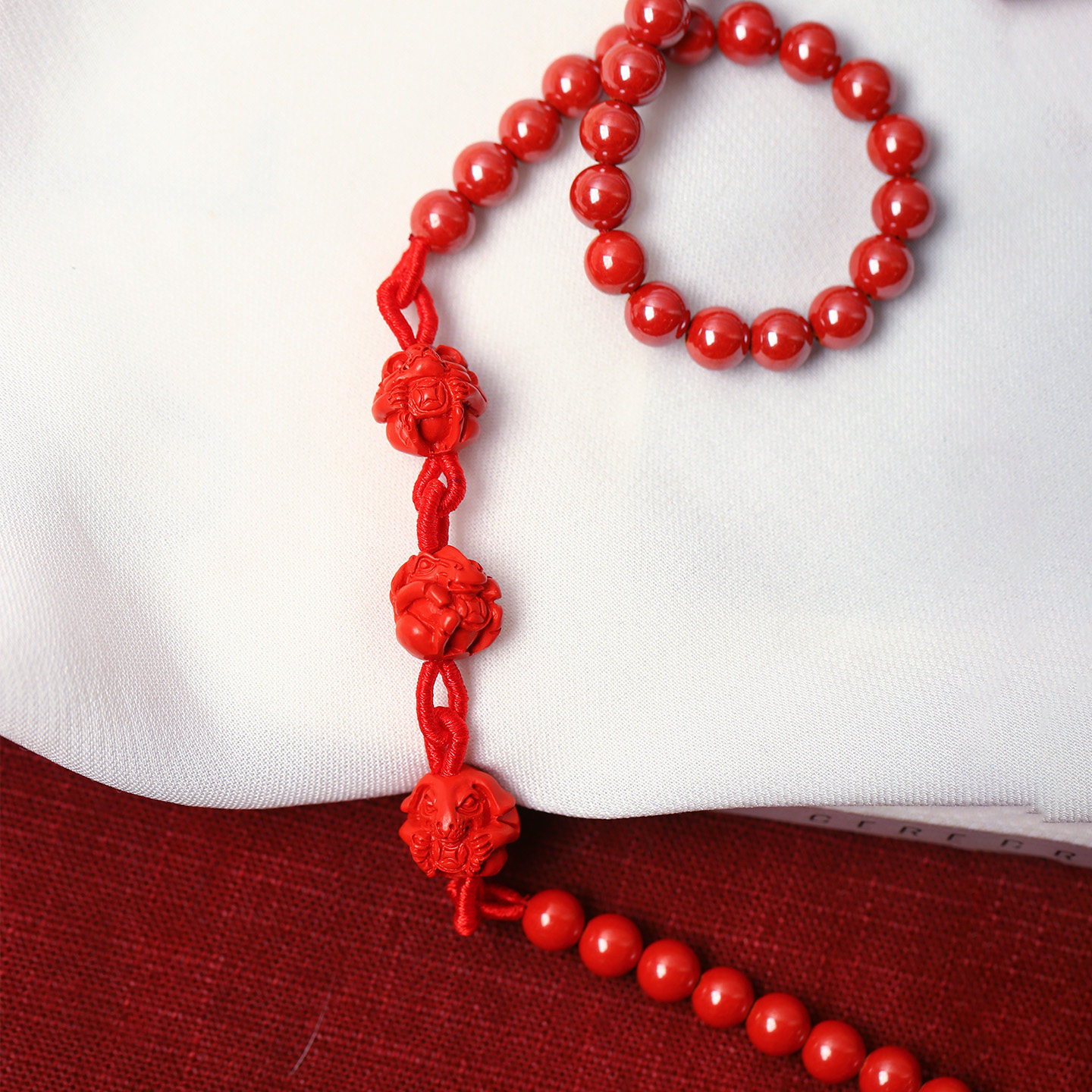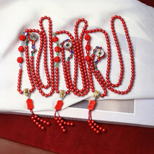 原矿朱砂高含量帝王砂圆珠三合生肖原创款 手链项链男女本命年朱砂
