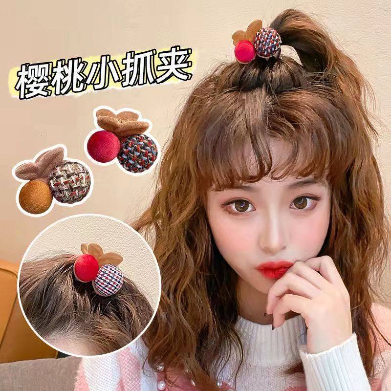 秋冬毛绒樱桃发夹女可爱侧边刘海抓夹发卡小号夹子头饰2024年新款