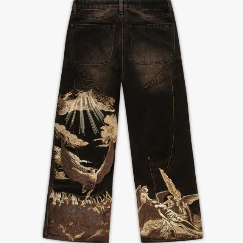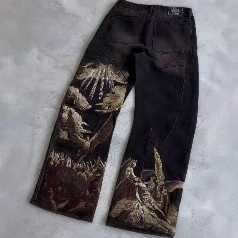 宽松休闲牛仔运动长裤 男大码 男冬 重磅复古弯刀裤 BD健美站加绒美式