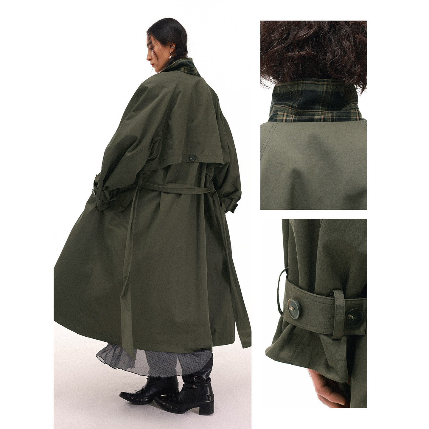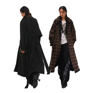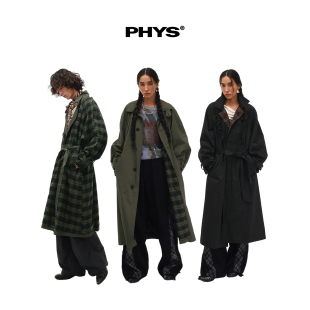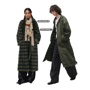 物理少年「双面旧旅」双面穿格纹内里落肩松弛感翻领中长款 风衣