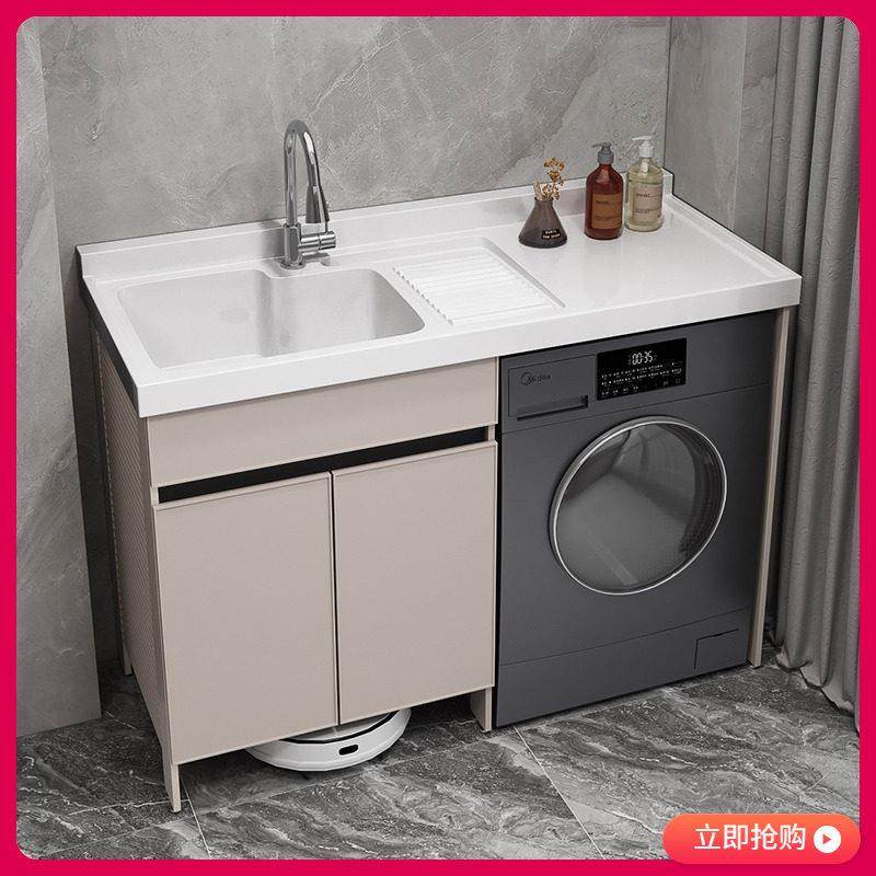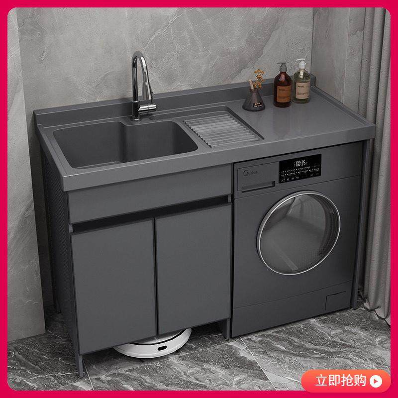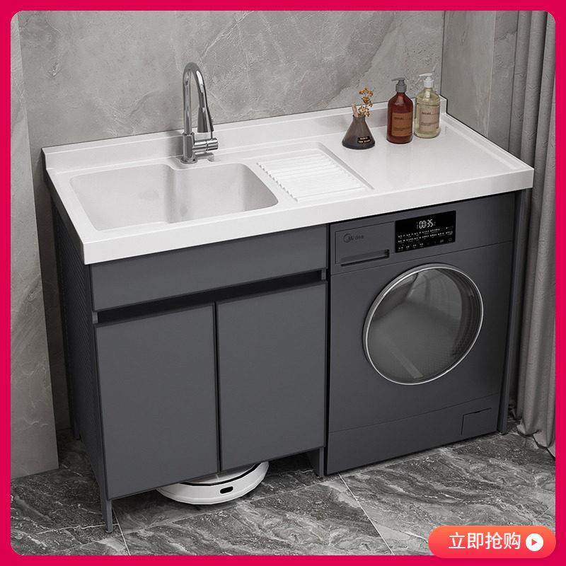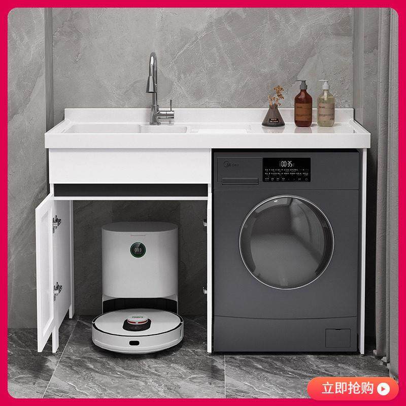 阳台洗衣机柜洗衣槽脸盆太空铝洗衣机一体柜扫地机器人定制伴侣柜