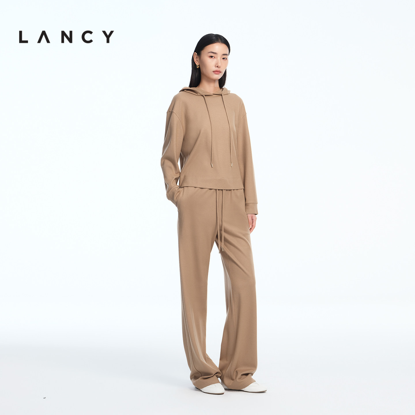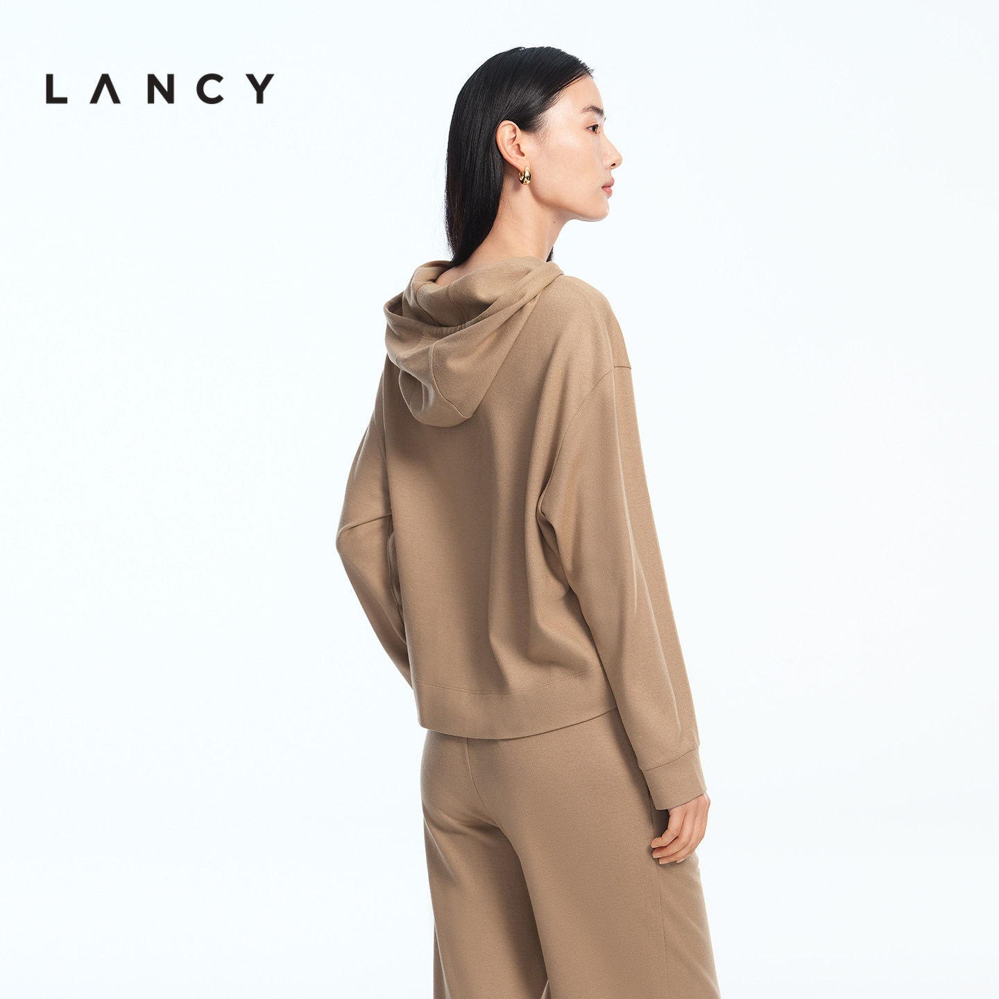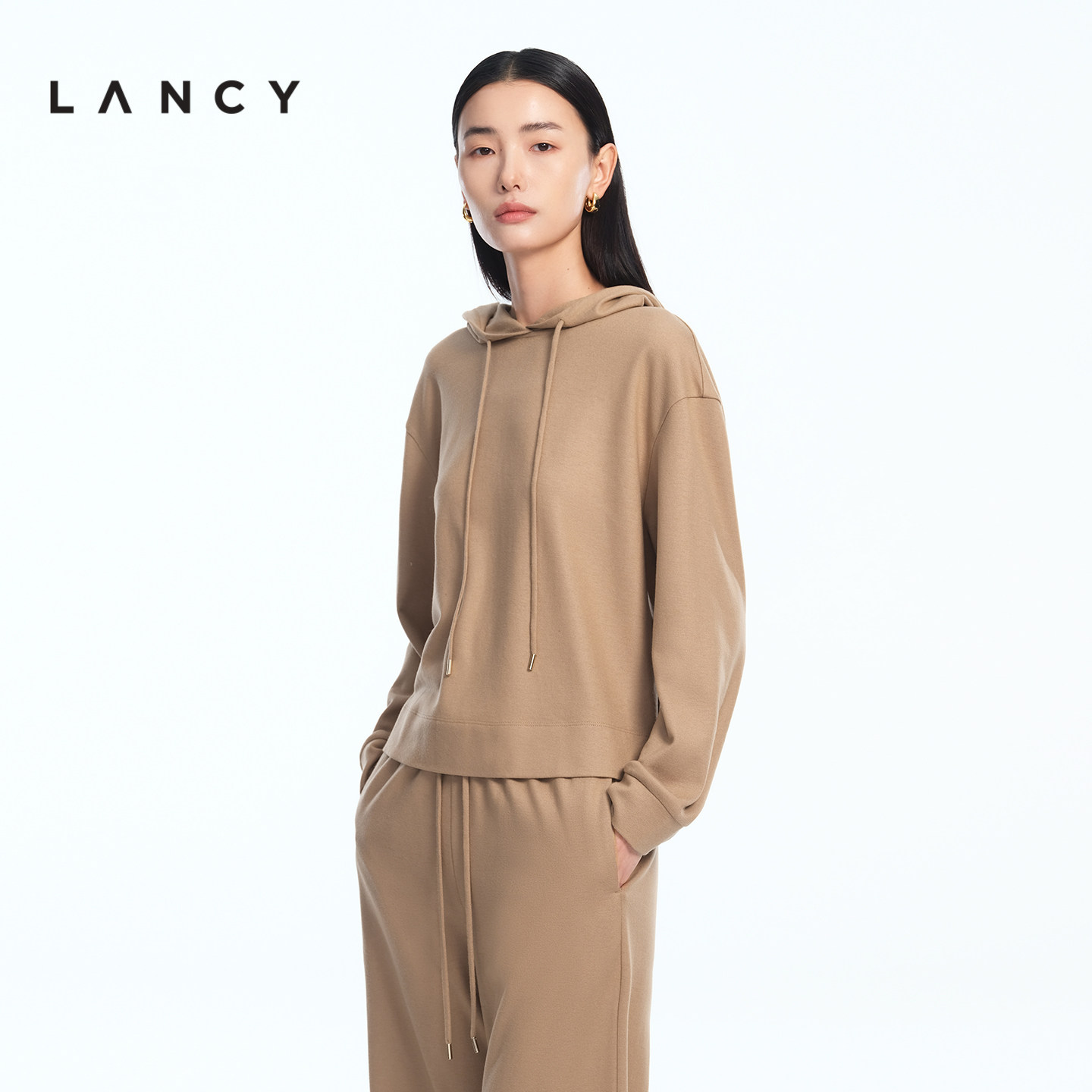 卫衣帽衫 LANCY 简约老钱风羊毛宽松连帽短款 新款 女 朗姿2026春季
