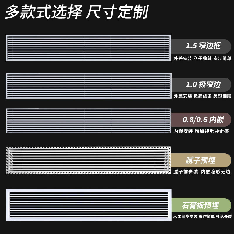 ABS中央空调出风口极简1.0极窄边框无边框嵌入式 格栅风口百叶