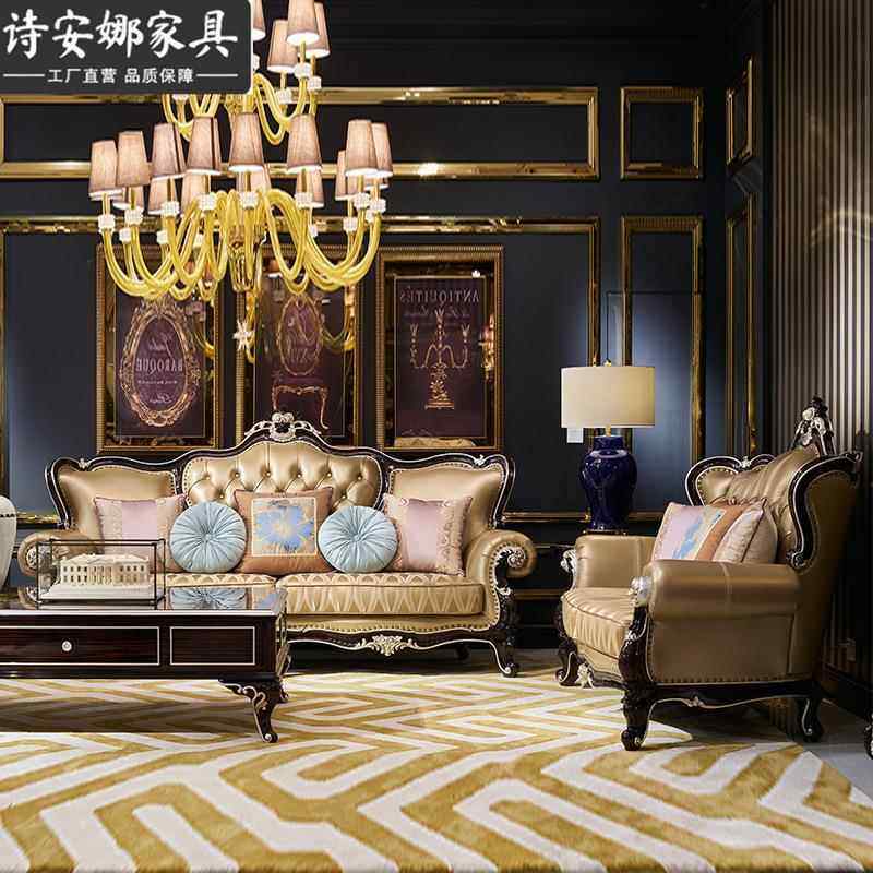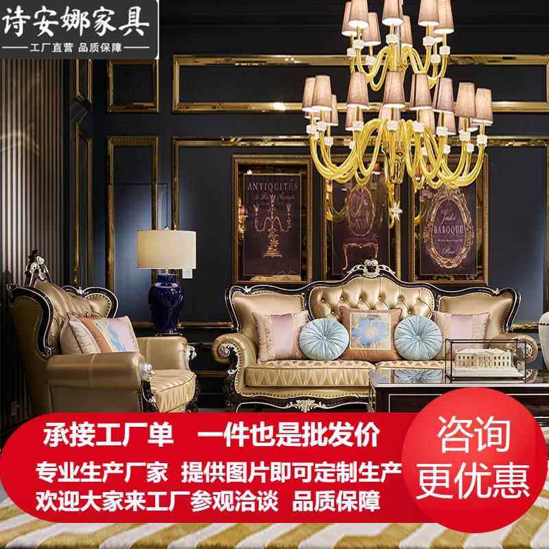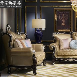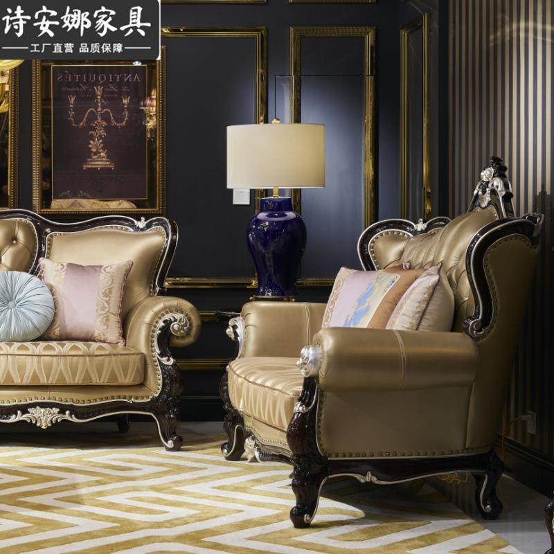 欧式 布艺沙发简欧皮布客厅贵妃大扶手带木头奢华实木组合沙发真皮