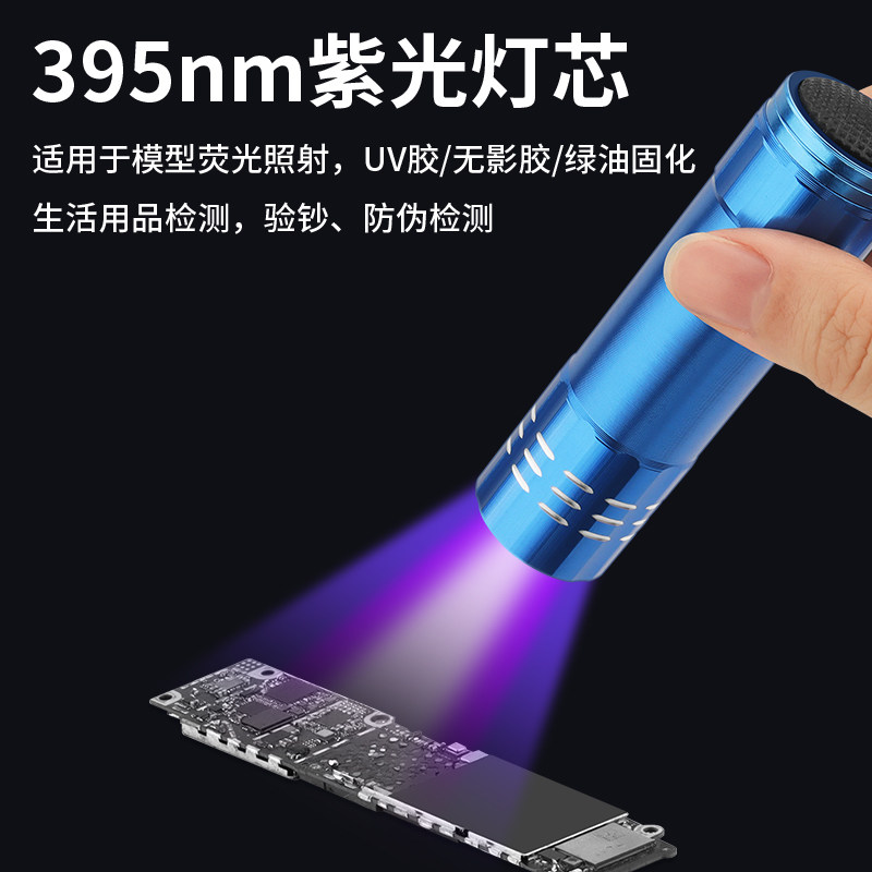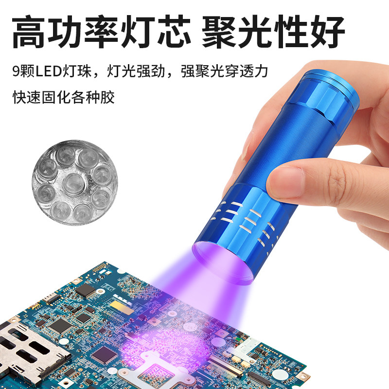 UV胶固化紫外线灯395nm紫光灯手电筒手机维修速干绿油无影胶烤灯