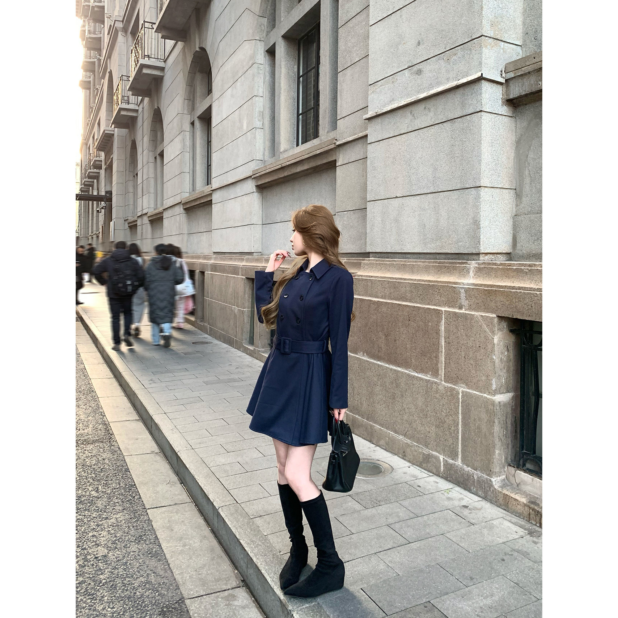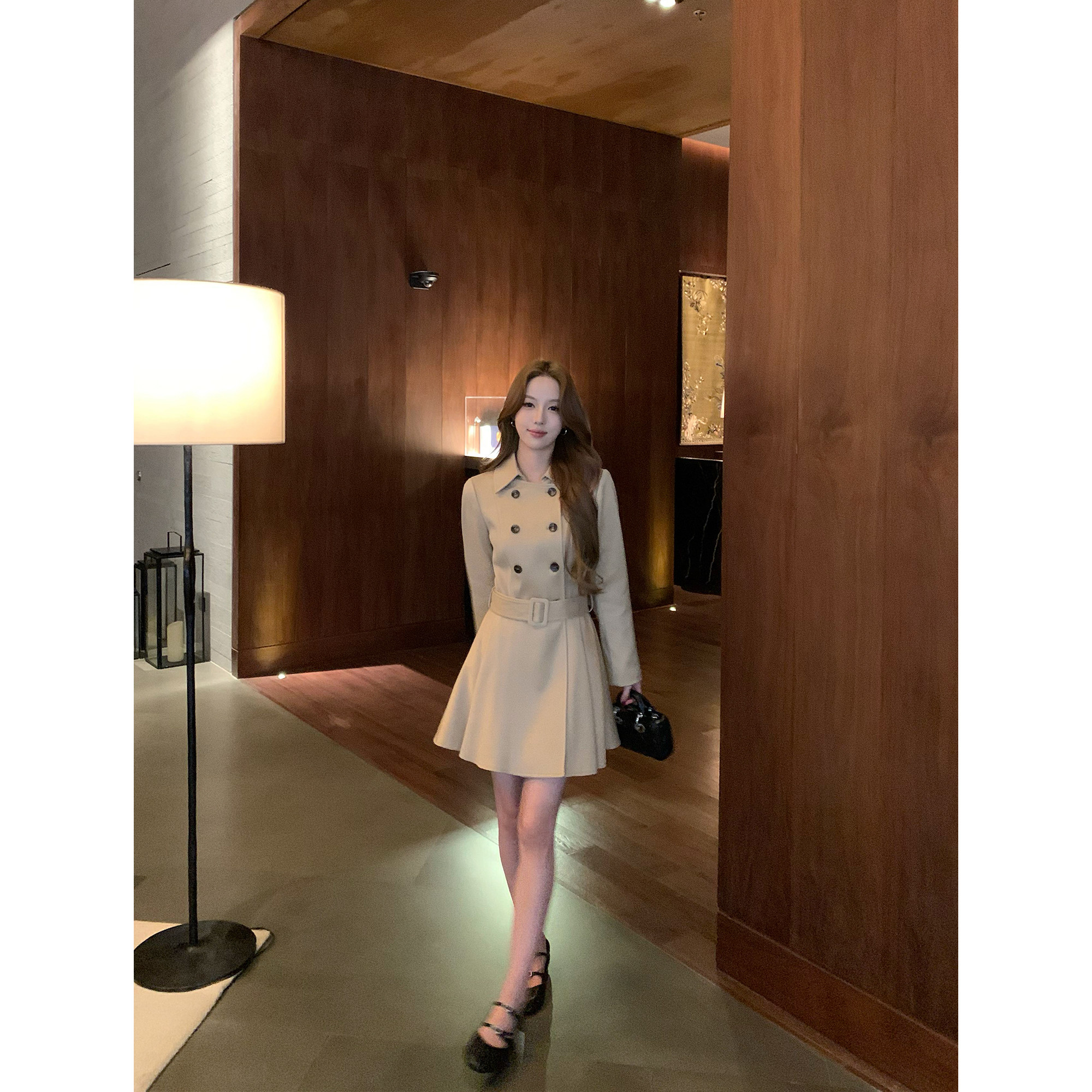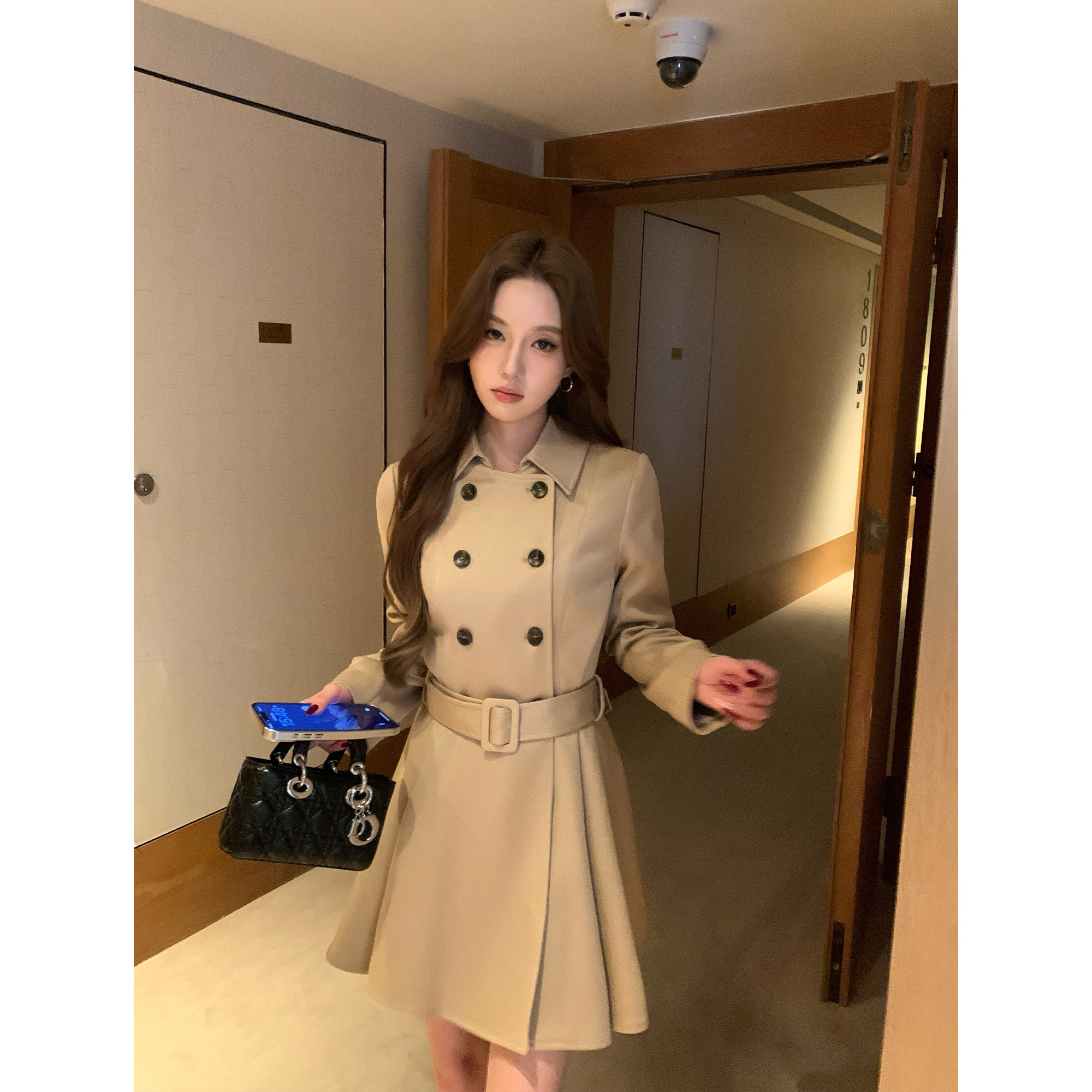 pusumede 复古卡其色双排扣风衣女高级感气质收腰外套 旧梦英伦