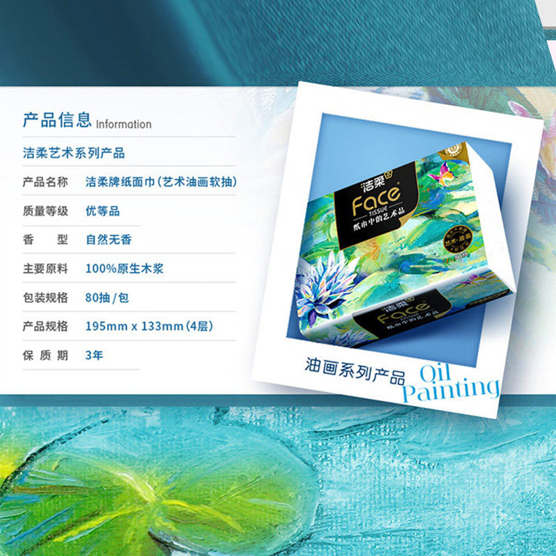 洁柔艺术油画抽纸4层80抽纸巾家用面巾纸卫生纸家用便携实惠装