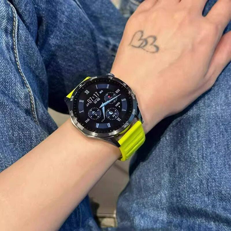 点纹硅胶单钉表带适用华为GT6通用GT5gt4GT3代watch4通用华为FIT4gt5表带GT4表带男智能运动荧光绿硅胶手表带