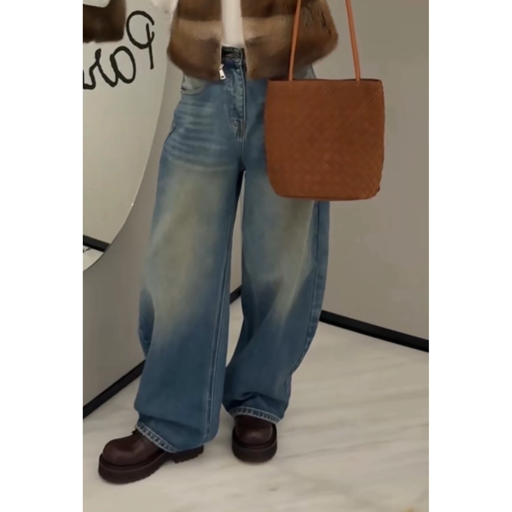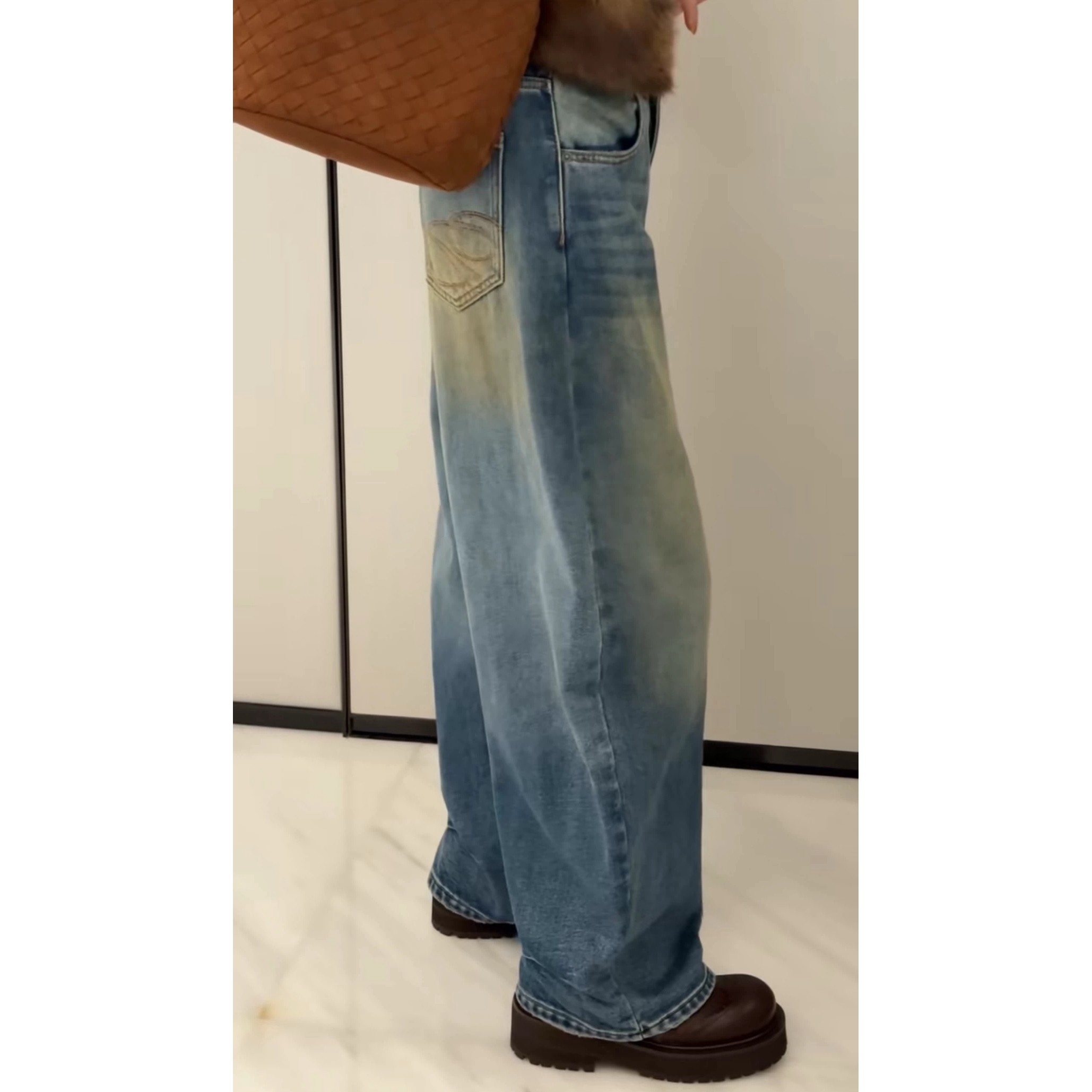 复古直筒宽松牛仔裤 美式 女新款 流行弯刀裤 子 ICH 休闲阔腿裤 MODE